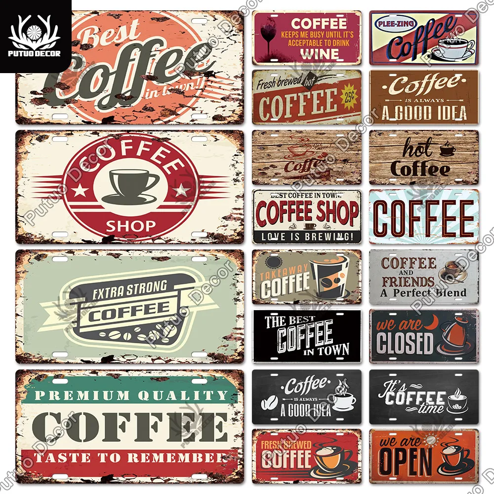 Металлический знак Putuo Decor в виде кофе, Лицензионная табличка, металлический винтажный жестяной знак, украшение для кафе, кухни, клуба, домашний декор для стен