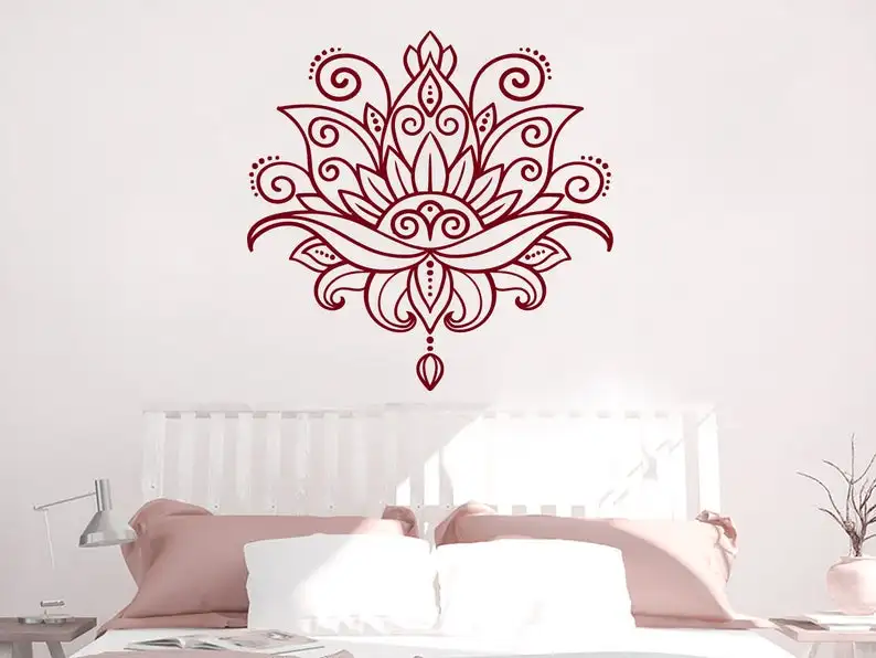 Наклейка на стену в виде лотоса, мандала, Виниловая наклейка на стену для йоги, Студия йоги, арт-деко, богемный стиль, украшение для дома, Фреска YJ28