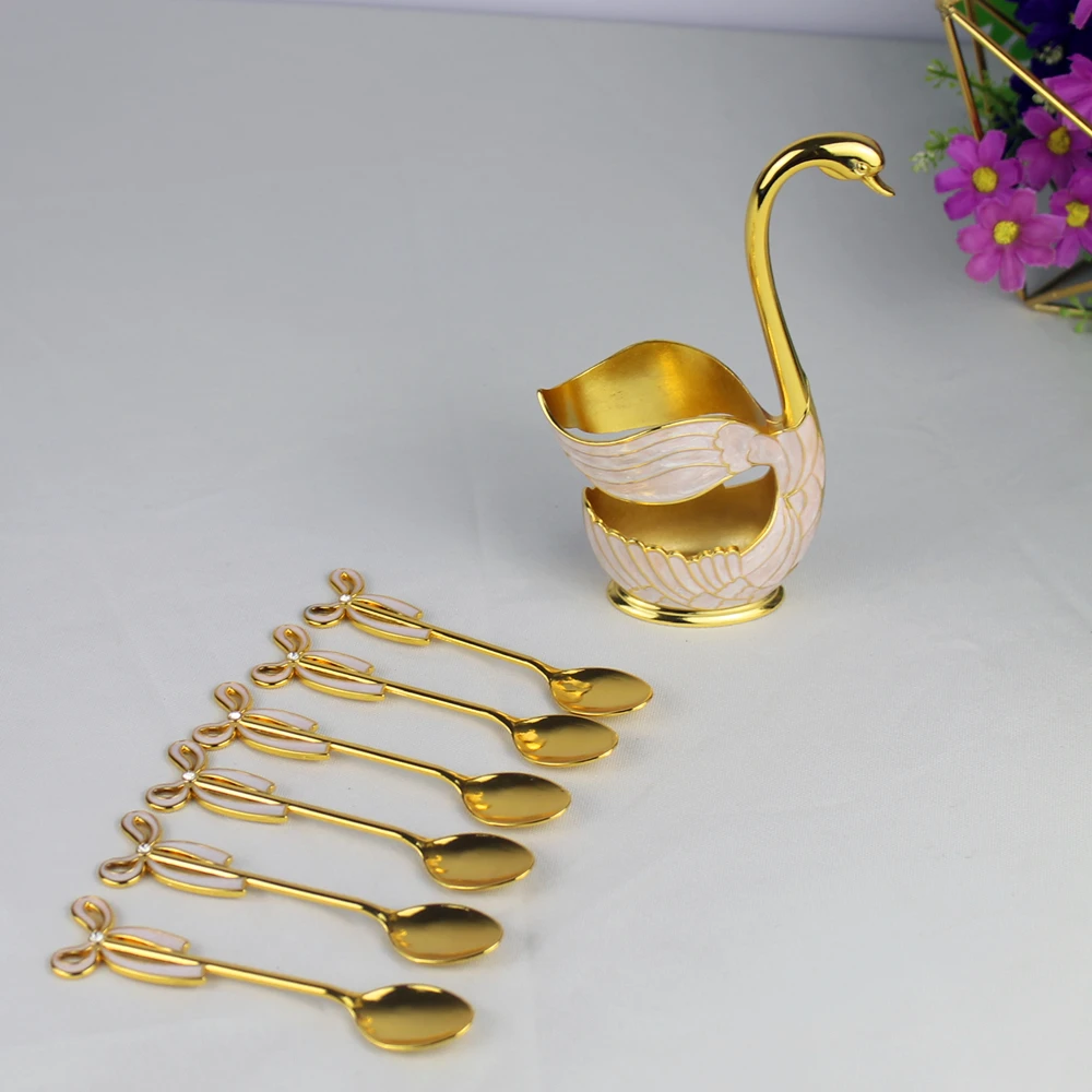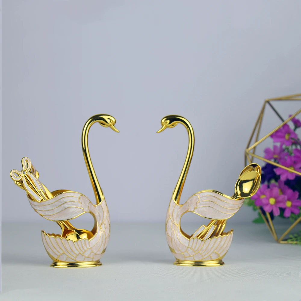 Посуда лебедь в европейском стиле изящная Золотаясеребристая отделка металлический торткомплект кофейных ложек Роскошная Посуда для домашнего декора стола