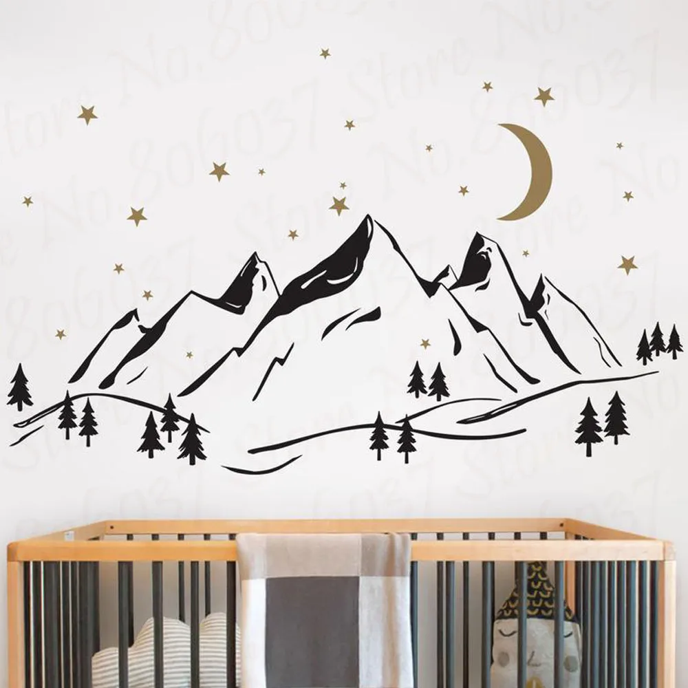Горы и ночь стикер с небом-Луна звезды виниловые наклейки лесная сцена, походы, кемпинг, созвездия декор комнаты WL1155