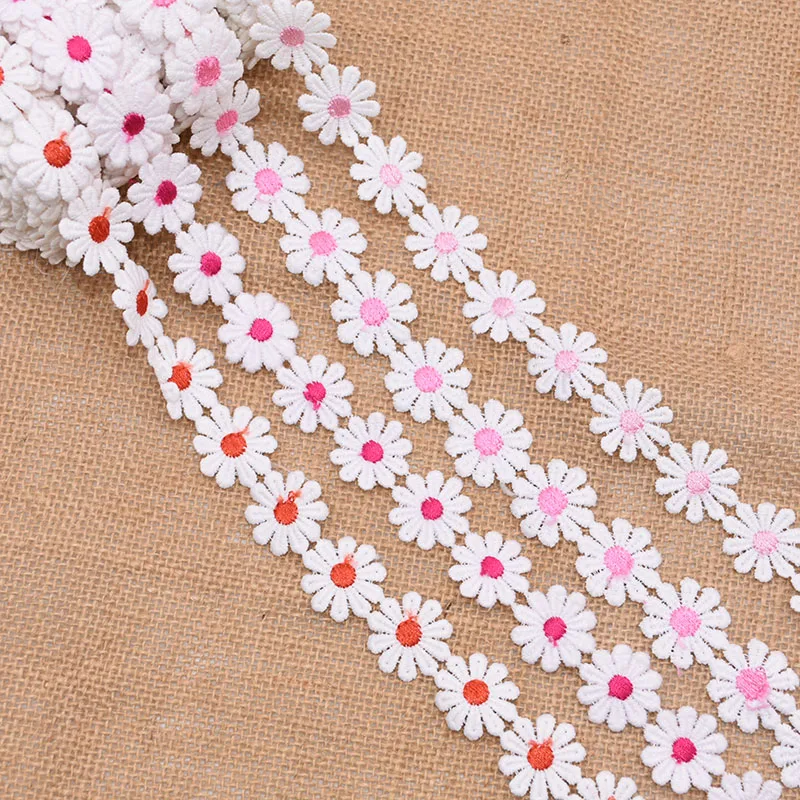 3 ярда 25 мм Красочные ромашки цветок кружевная бейка Вязание Свадебная вышивка Diy ручной работы лоскутное Ленточные швейные принадлежности ремесла