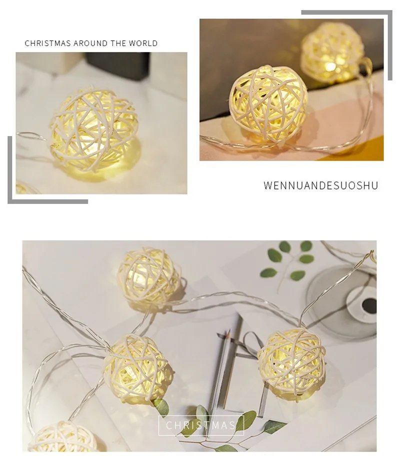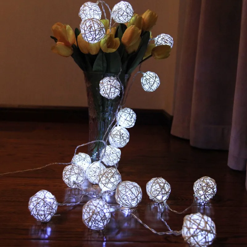 20 светодиодных гирлянд в виде шара из ротанга, украшения для рожде...