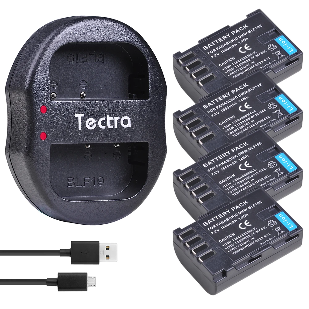 Аккумуляторная батарея BLF19PP с двумя USB-портами для камеры Panasonic Lumix DMW-BLF19E GH4 GH5 G9 GH3H GH4H GH3AGK, 4 шт., 1860 мАч