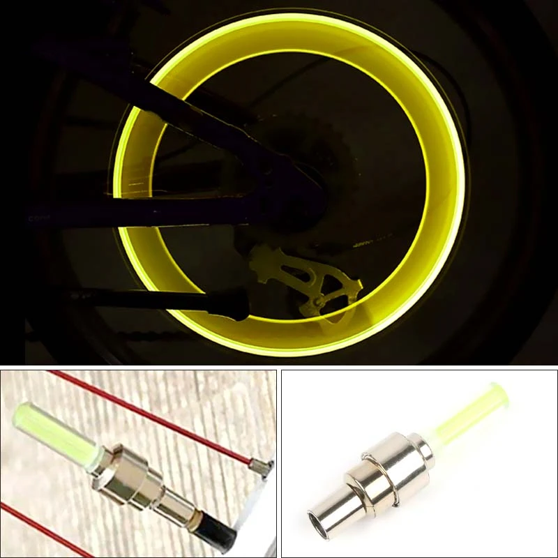 Bicycle Tyre Valve Neon Cap Light Lights Bike Cycling Wheel cap Light