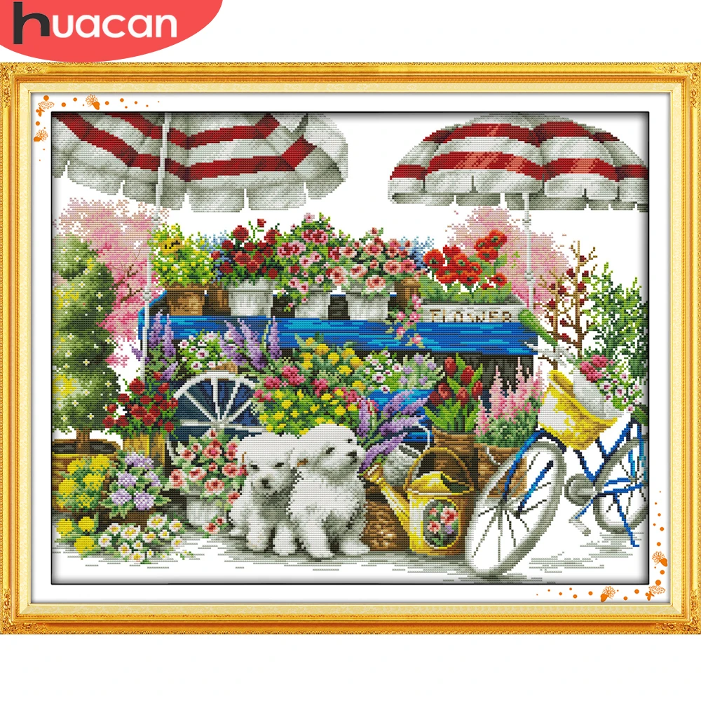 HUACAN вышивка крестиком собака животные наборы вышивки белый холст...