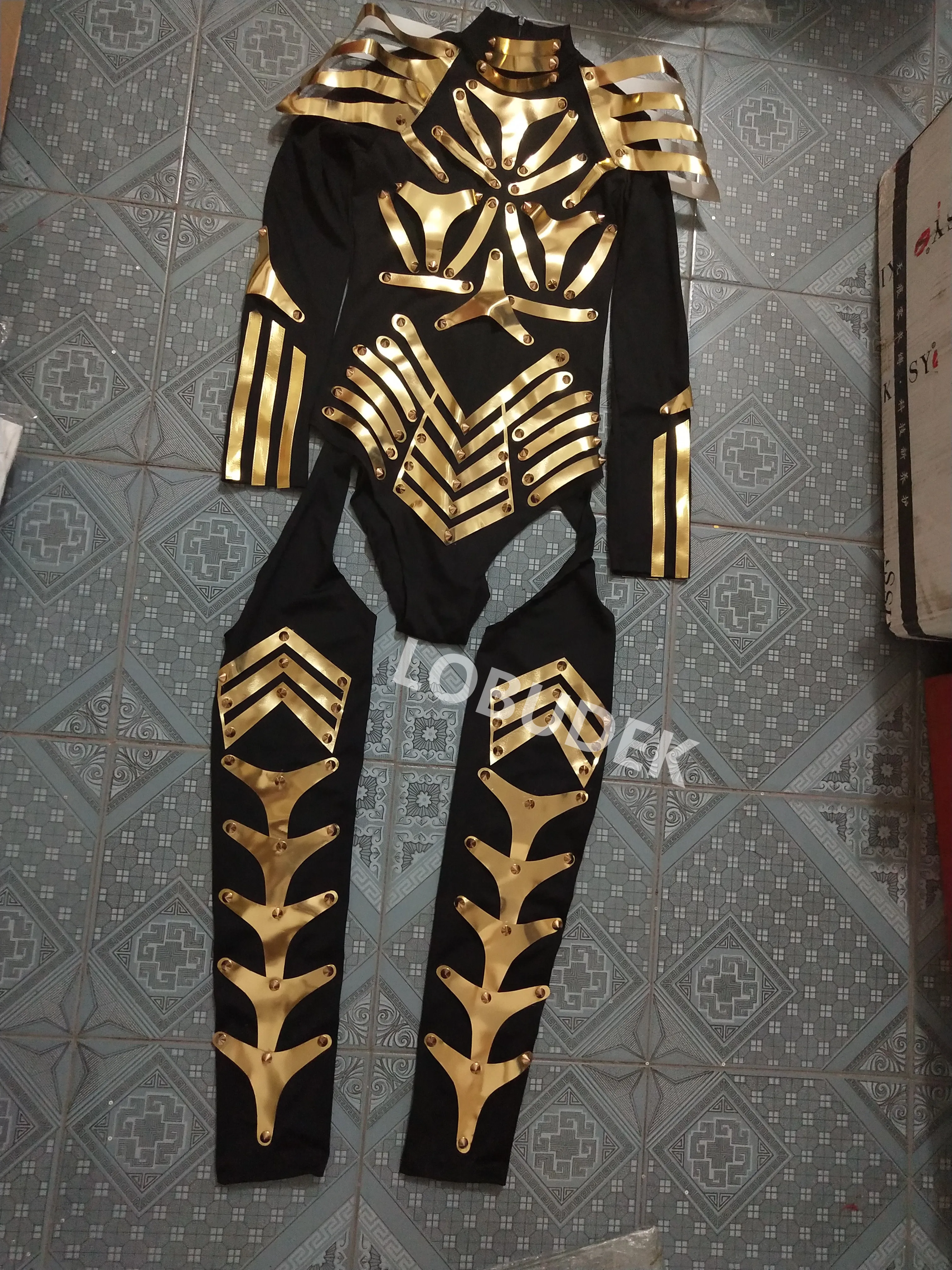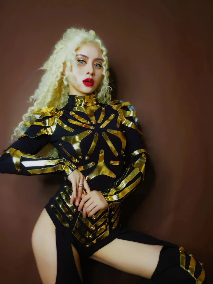 Золотой зеркальный бронированный комбинезон для женщин, одежда для ролевых игр воина, одежда для выступлений для ночного клуба, танцев, командного шоу, одежда для сцены, карнавальный костюм