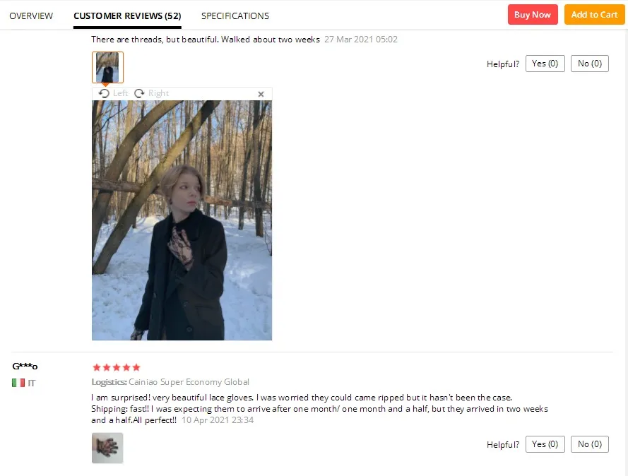 Я удивлен! Очень красивые кружевные перчатки. Я беспокоился, что они могут быть порванные, но это не было так. Доставка: быстрая! Я ожидала, что они прибудут через месяц/месяц с половиной, но они прибудут через две недели с половиной. Все идеально!