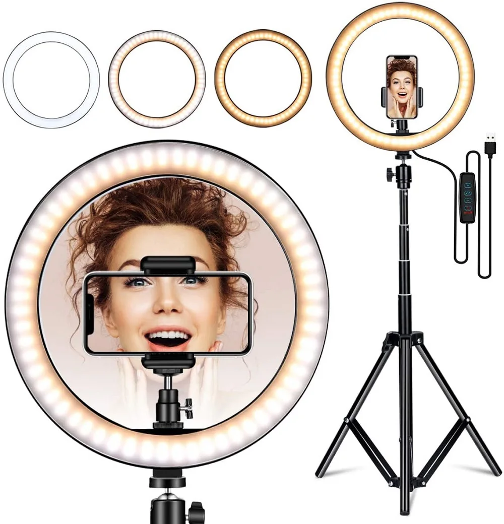 Кольцевой светильник, 10 дюймов, со штативом-держателем для телефона, для прямых трансляциймакияжа, светодиодный светильник для камеры, для YouTube, видеофотографии