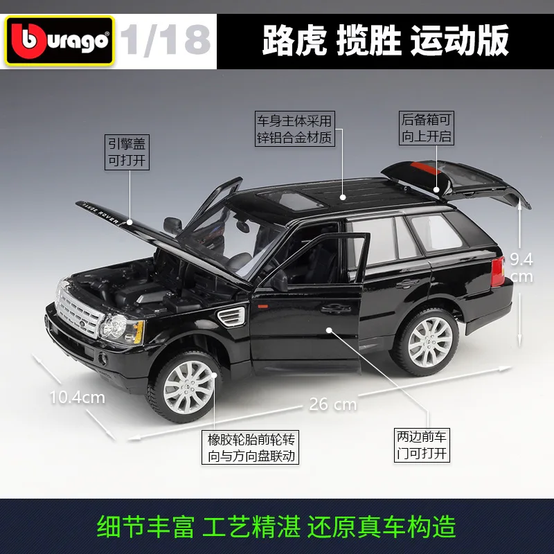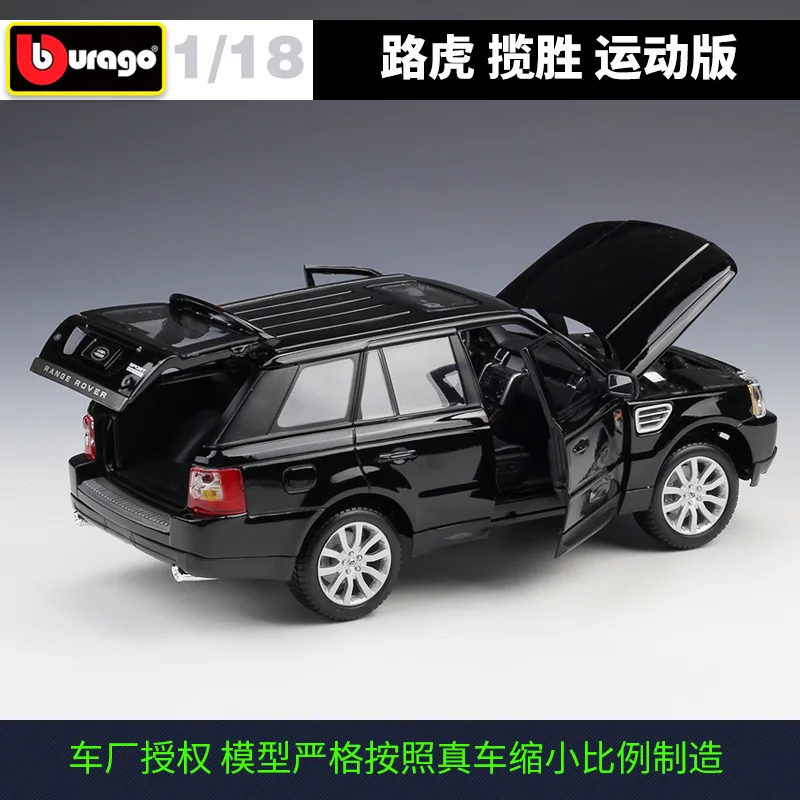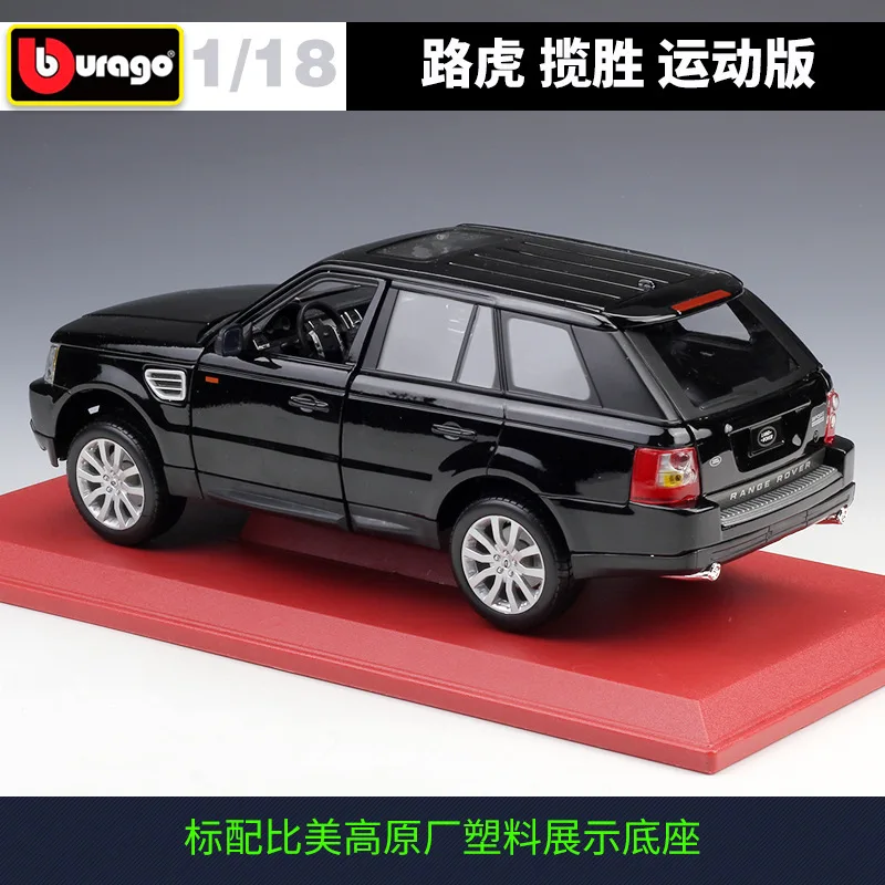 Литая под давлением модель автомобиля Bburago 1:18 Range Rover, спортивный внедорожник, черная модель высокого имитационного автомобиля из сплава