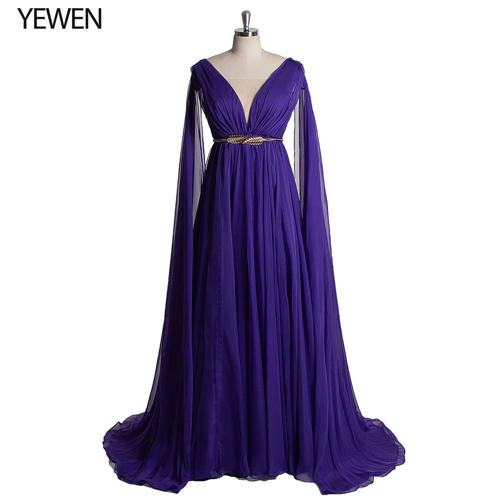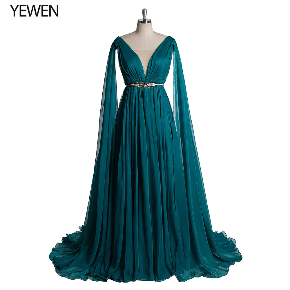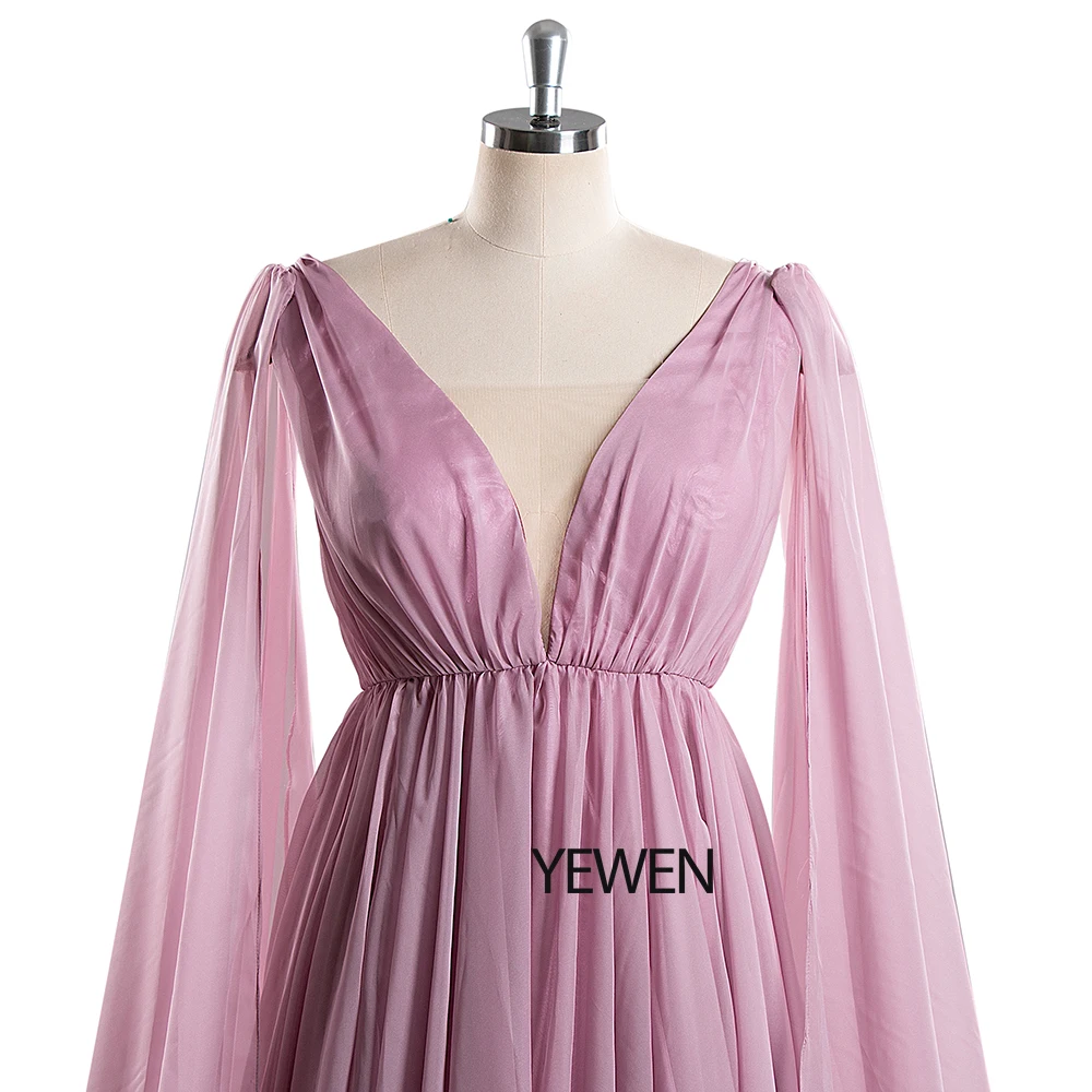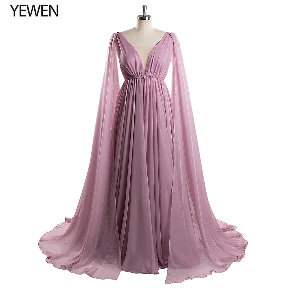 Длинное вечернее платье YeWen со шлейфом, с разрезом, V-образным вы...