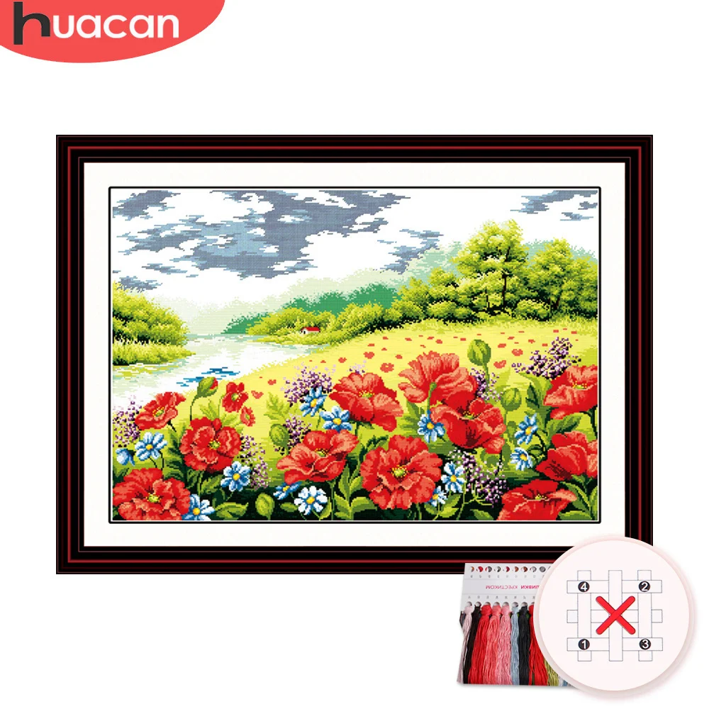 HUACAN вышивка крестиком Приморский Пейзаж Набор сделай сам цветок ...