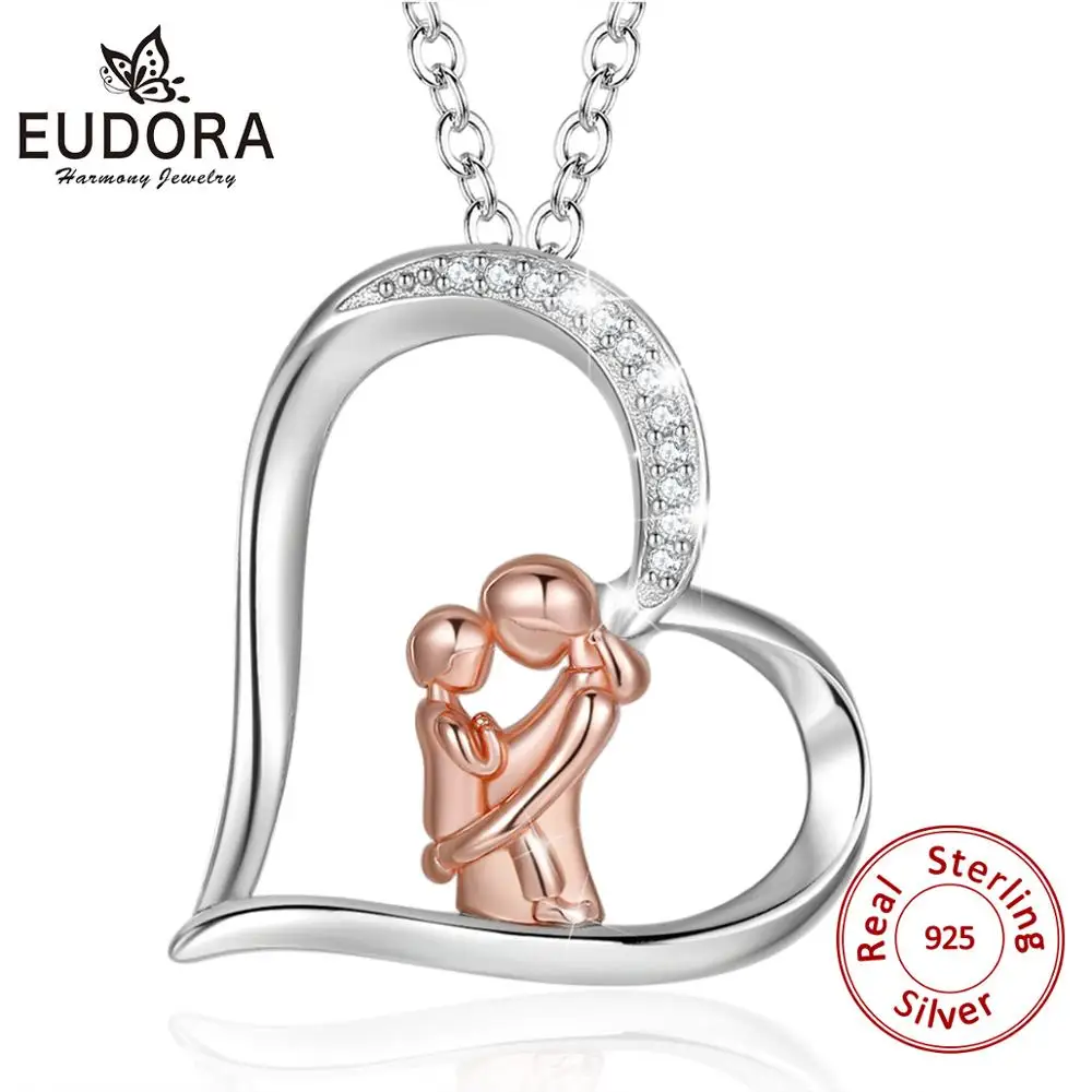 EUDORA 925 пробы Серебряное популярное ожерелье с сердцем для матери и дочери с кубическим цирконием мама ожерелье подарок на день рождения матери D517