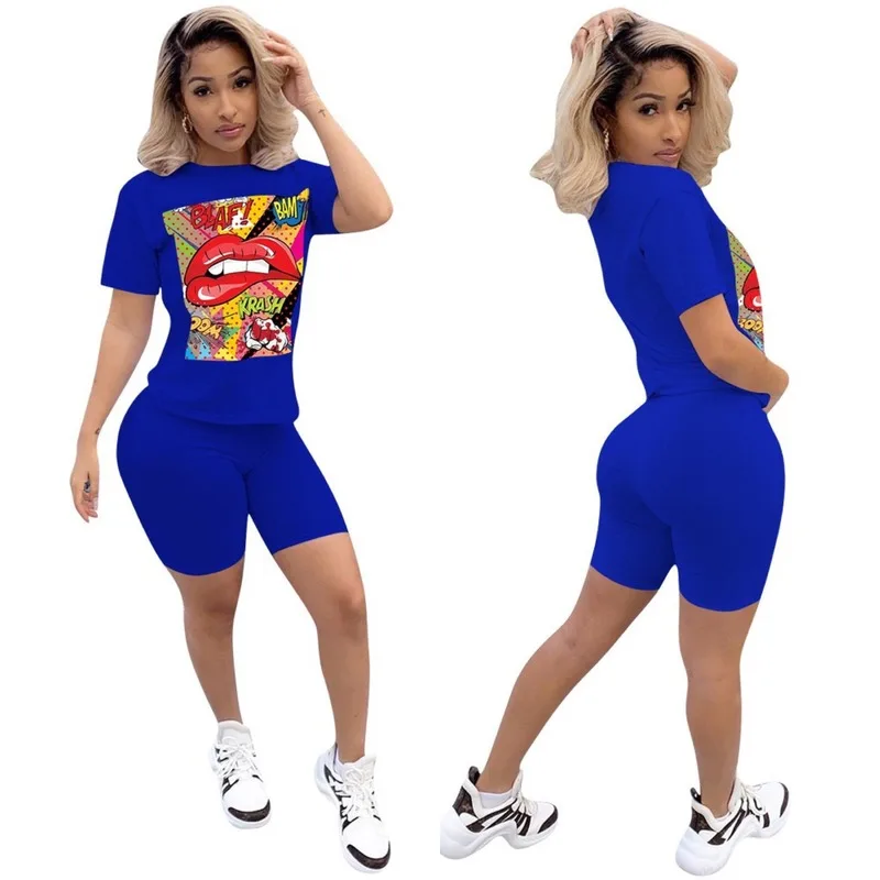 Женский спортивный костюм, комплект из двух предметов: футболка с надписью и велосипедные шорты, повседневный комплект из 2 предметов для фитнеса и бега, 2020