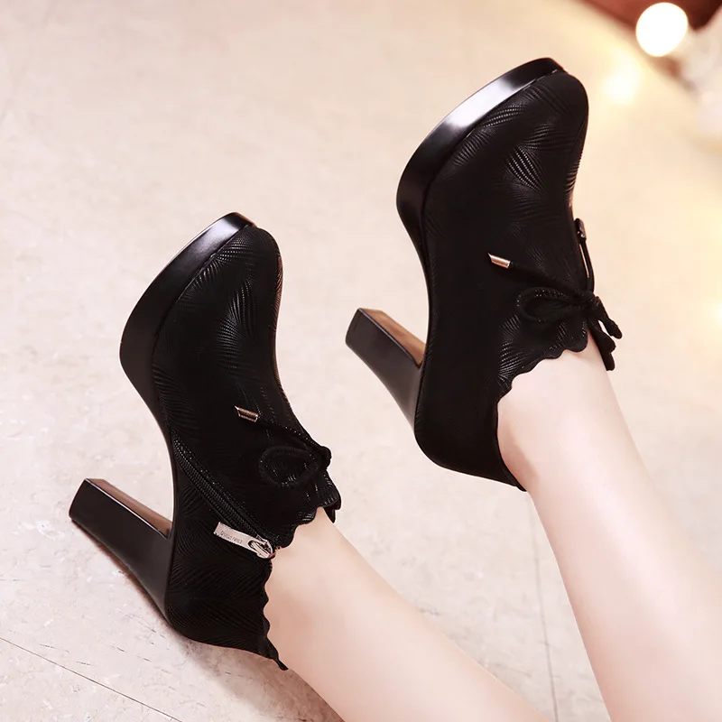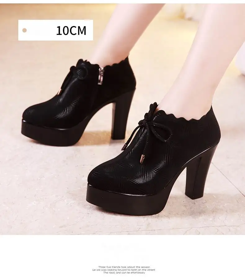 GKTINOOтуфли-лодочки на платформе с глубоким носком на блочном каблуке размера плюс 33-43 Женская обувь 2022 г. Черные туфли на высоком каблуке Женская кожаная обувь для офиса