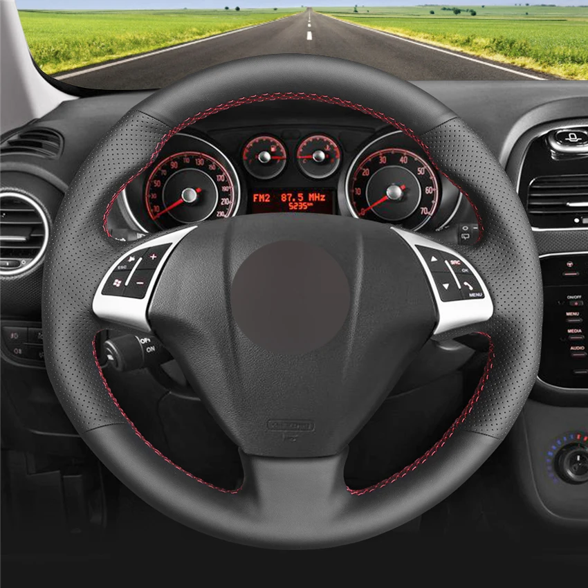 Сшитая вручную черная оплетка рулевого колеса из искусственной кожи...