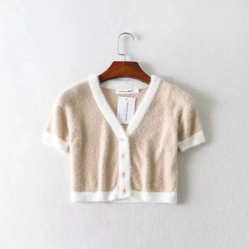 Розовый кардиган, женские свитера, корейский укороченный свитер, Осенние Топы с длинным рукавом, v-образный вырез, короткий Укороченный кардиган, мохеровый свитер, осень 2019