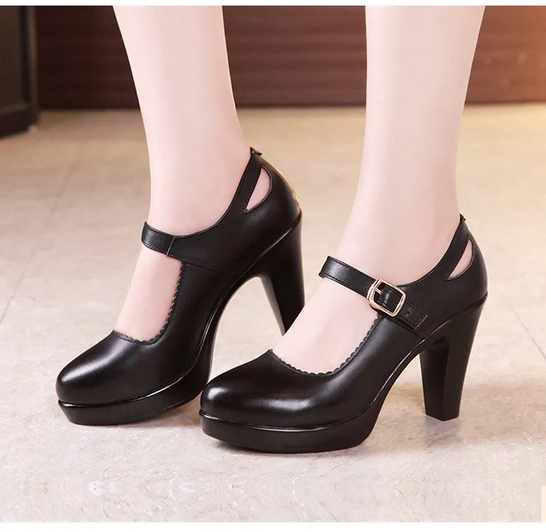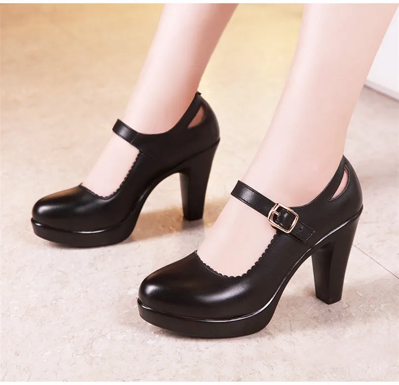 GKTINOOбольшие размеры 33-43; Туфли на платформе с блочным каблуком; Женские туфли-лодочки; Коллекция 2022 года; Черные туфли Mary Jane; Женские офисные кожаные туфли на высоком каблуке