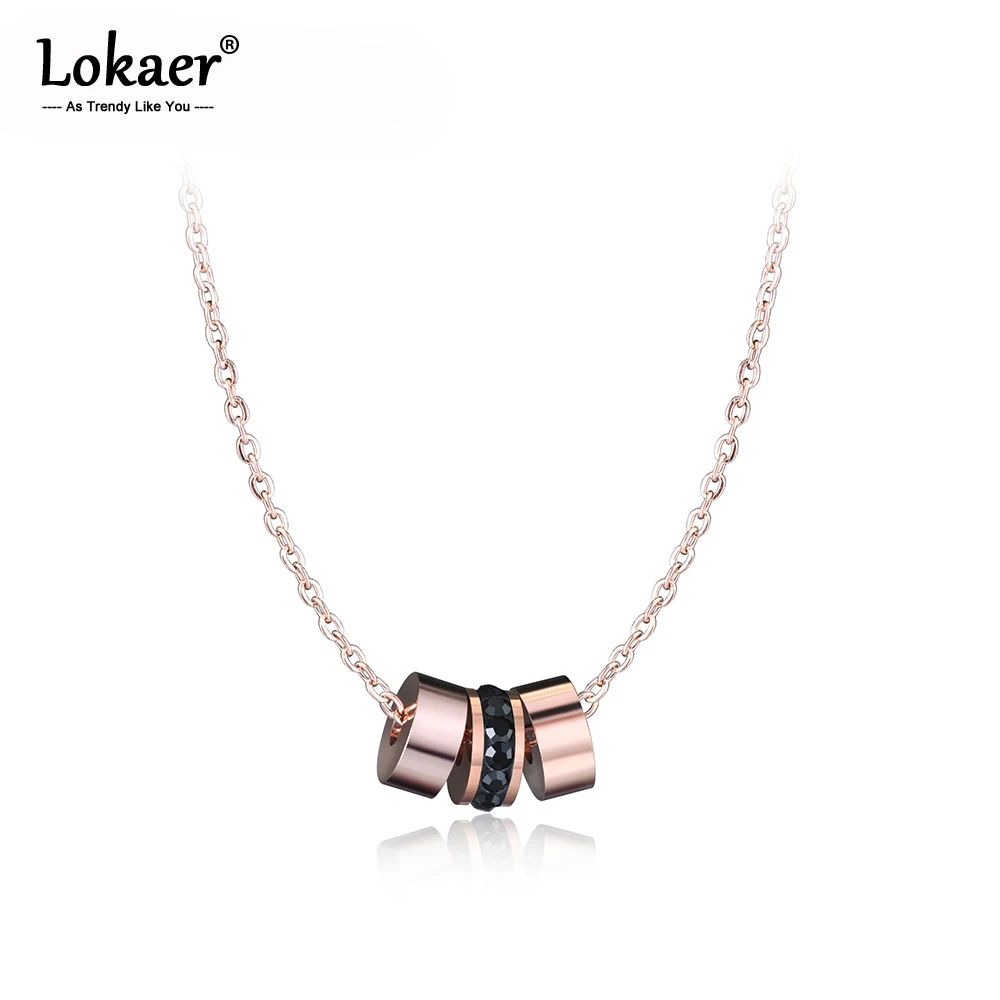 Lokaer 316L нержавеющая сталь 3 шт круги горный хрусталь колье ожерелье для женщин розовое золото цвет массивные ожерелья ювелирные изделия colar