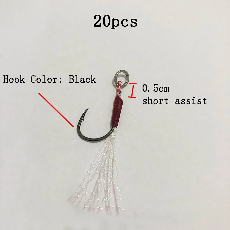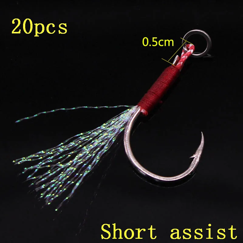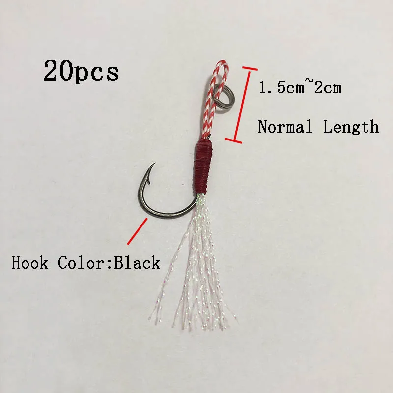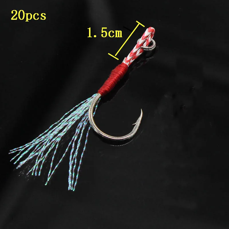 20 шт.лот вспомогательный крючок с зазубриной одиночные джиг Крючки нить перо песка Высокоуглеродистая сталь короткий вспомогательный рыболовный крючок медленная приманка для крючка