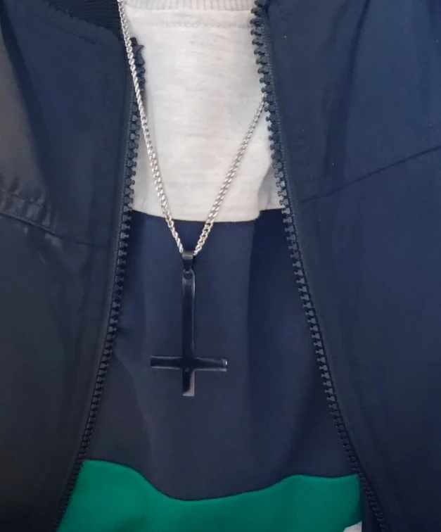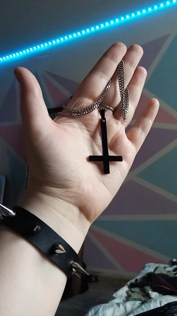 на цепочке как будто звенья чуть погнутые, но на за такие деньги на это можно закрыть глаза, ведь жемчужина подвески, собственно, крест, выглядит просто охренительно - он черный, на нем нет никаких коцек, он из нержавейки судя по описанию, прям вообще кайфово выглядит, очень хороший и качественный крест святого петра. На серьезных щах его, конечно, напялить не получится лично мне, но эстетические потребности он удовлетворяет, и дополнить какой нить образ вполне себе, ну или на руку намотать как браслет, хе-хе. Приехал на неделю раньше положеного!!!
