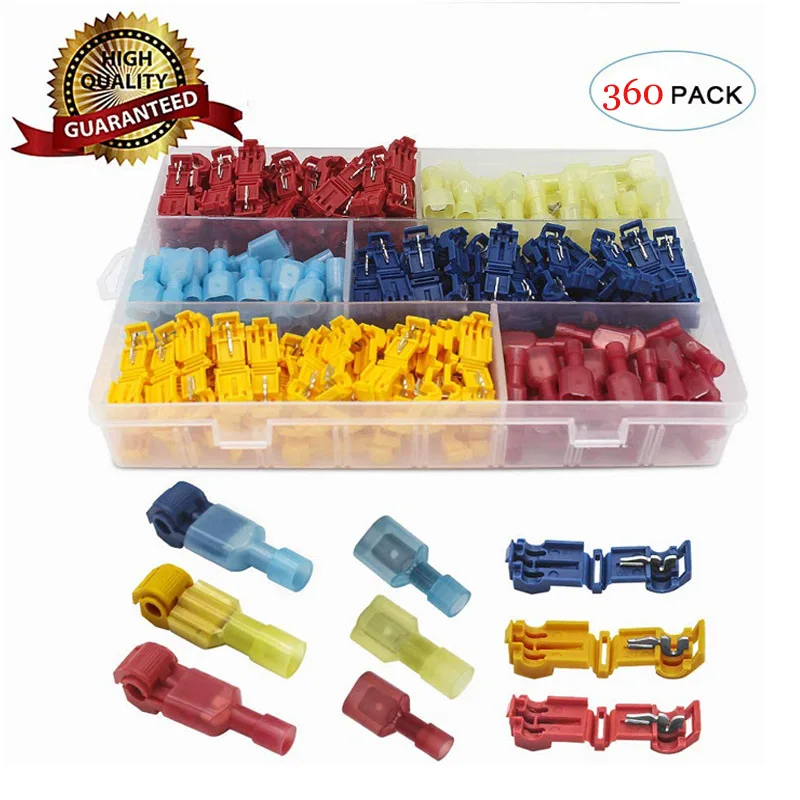 Т-образные разъемы для проводов, самозачистка, быстрый Сращивание, клеммы для электрических проводов, изолированные штырьковые разъемы, лопата, 360 шт., комплекты клемм