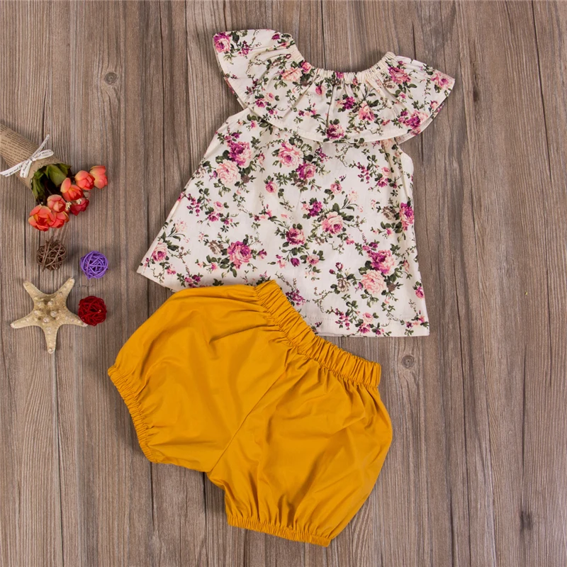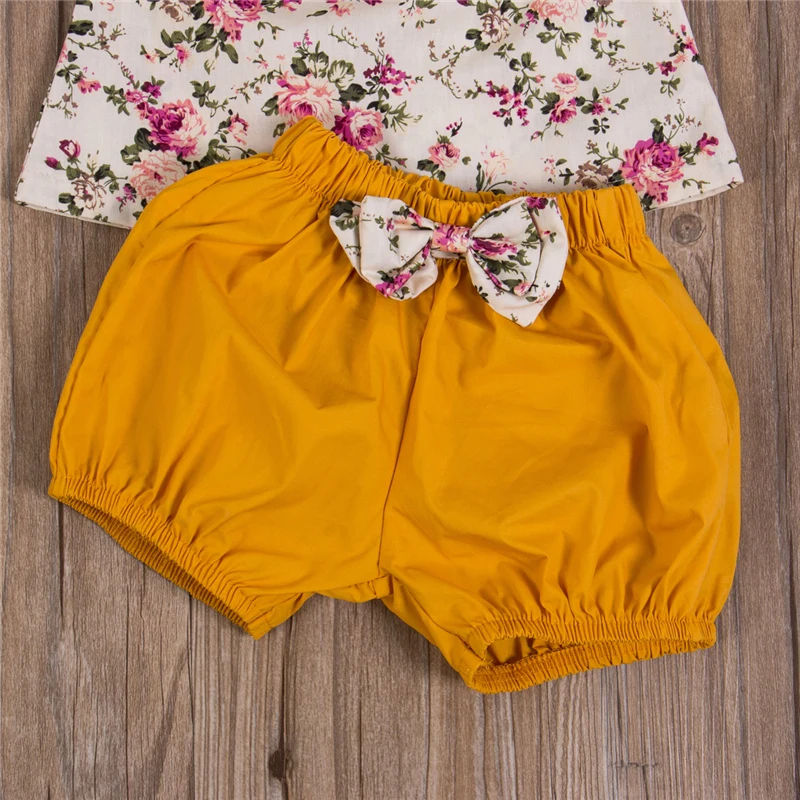 Комплект из 2 предметов для маленьких девочек; Топ с цветочным рисунком + шорты; Комплекты