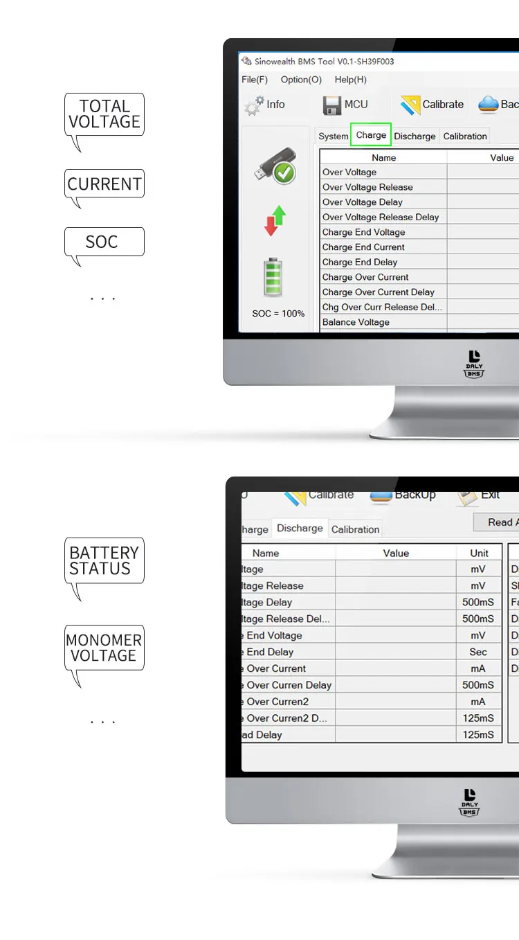 ◆ 3s и 4S и 5S, параметры могут быть настроены клиентом с помощью кабеля USB UART и USB 485, но если cutomre выбрать bluetooth, следует выбрать только модель UART BT. Спасибо.