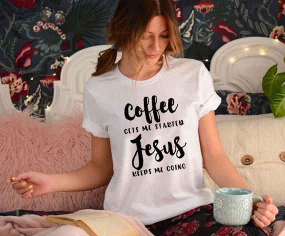 Женская футболка с надписью кофе получает меня начатым, надписью Keep Go, модная футболка, Забавные топы с изображением Христианской Библии