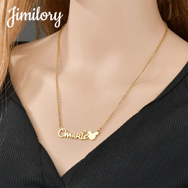 Jimilory, индивидуальное ожерелье с именем Микки и Минни из мультфильма, цепочка с буквами из нержавеющей стали, ожерелья, трендовые Подарки для женщин и девушек
