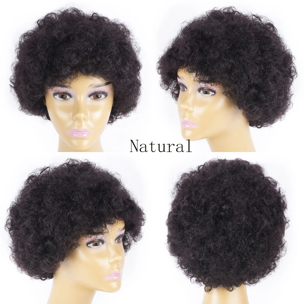 Короткие афро-натуральные кудрявые 100% человеческие волосы парики дешевые человеческие волосы парик для вечерние танцев Косплей
