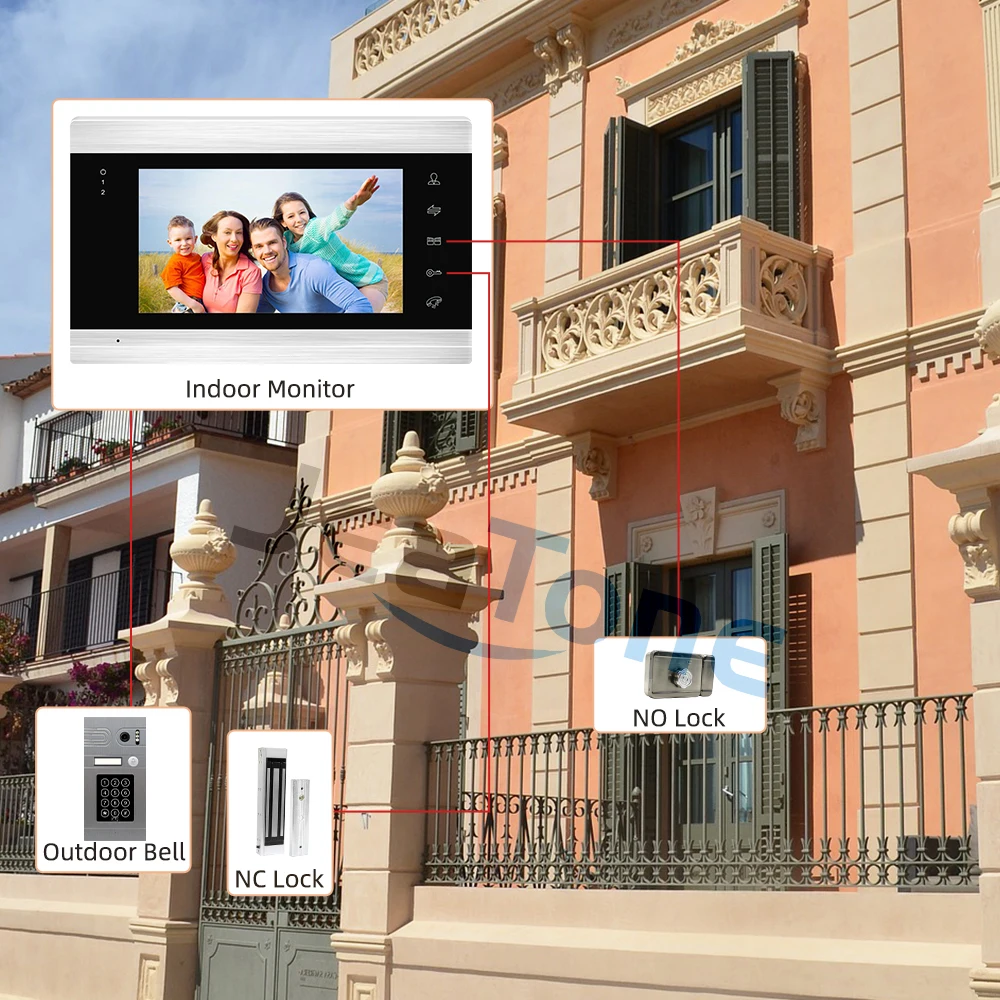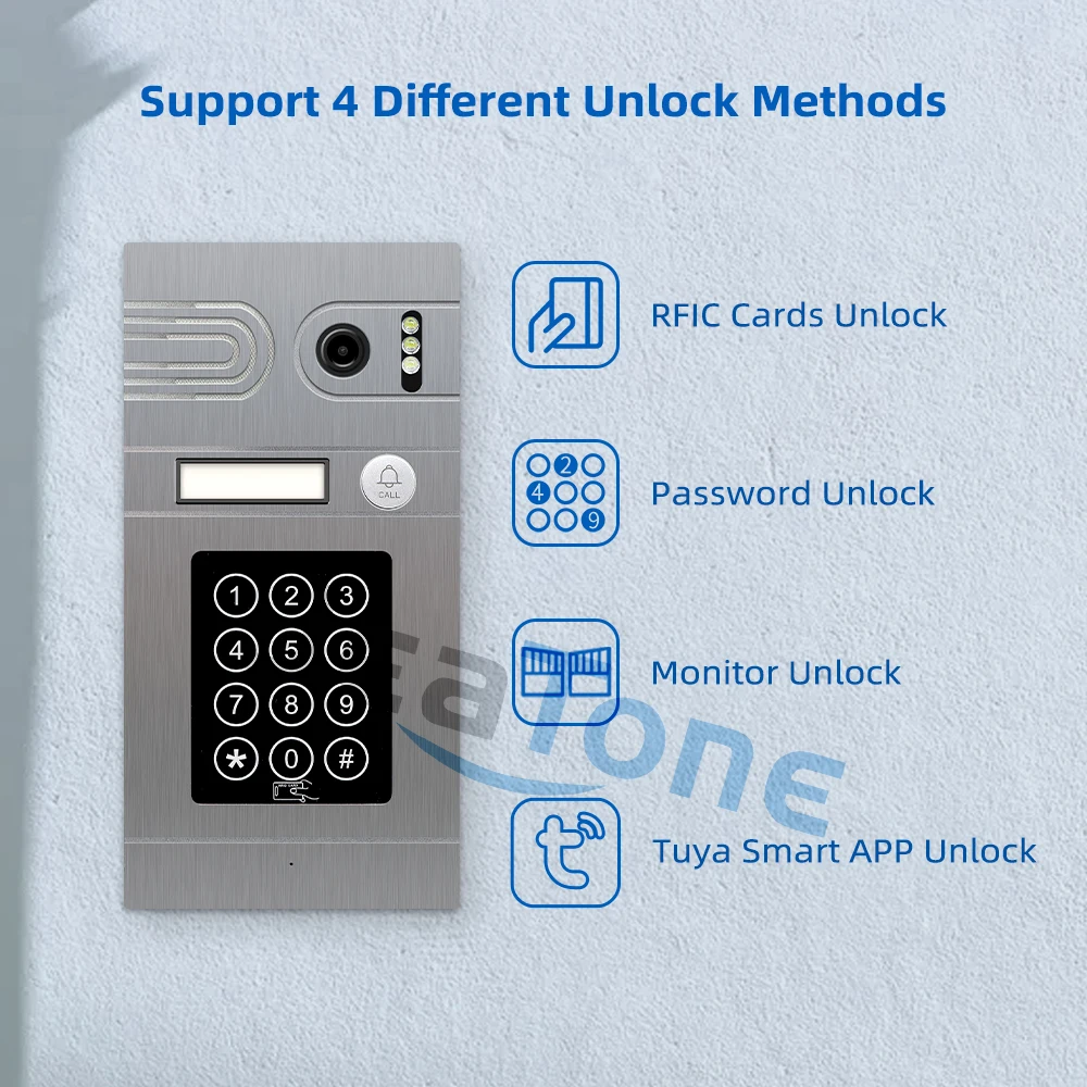 С помощью этой системы внутренней связи вы можете использовать карты, Pssword, монитор и телефон для разблокировки двери, что будет более удобным!