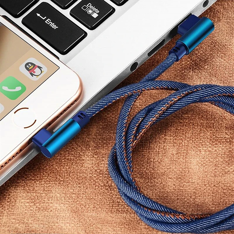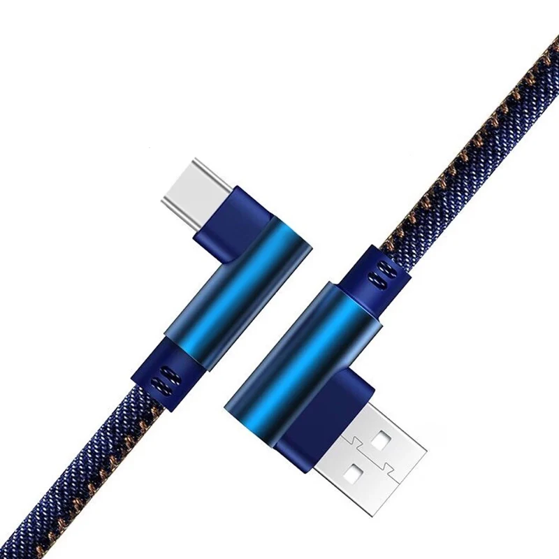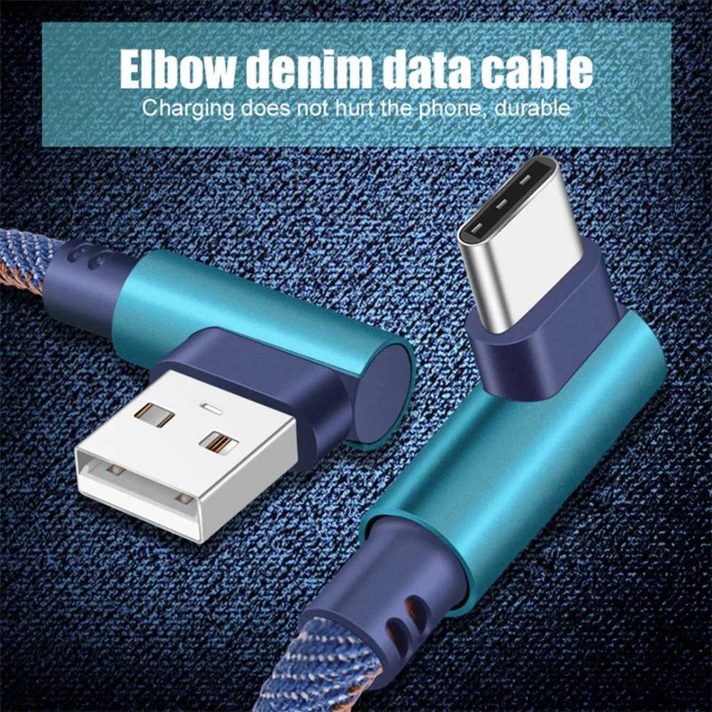 USBC кабель для быстрой зарядки деним 2.4A 90 градусов Тип C шнуры для Huawei P20 Pro Xiaomi Redmi Micro USB кабель для передачи данных для телефона Android