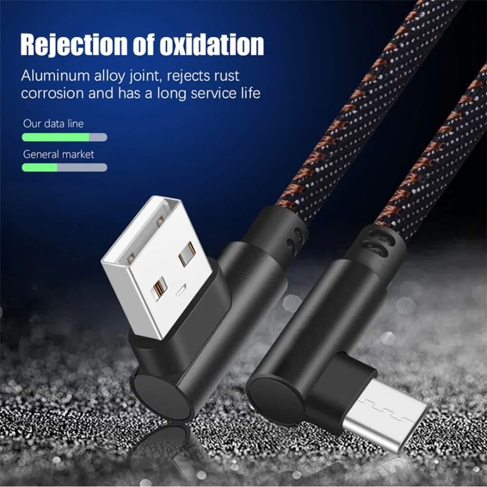 Feature 3Micro USB Cable 90 Degree 2.4A Fast Charging Cable