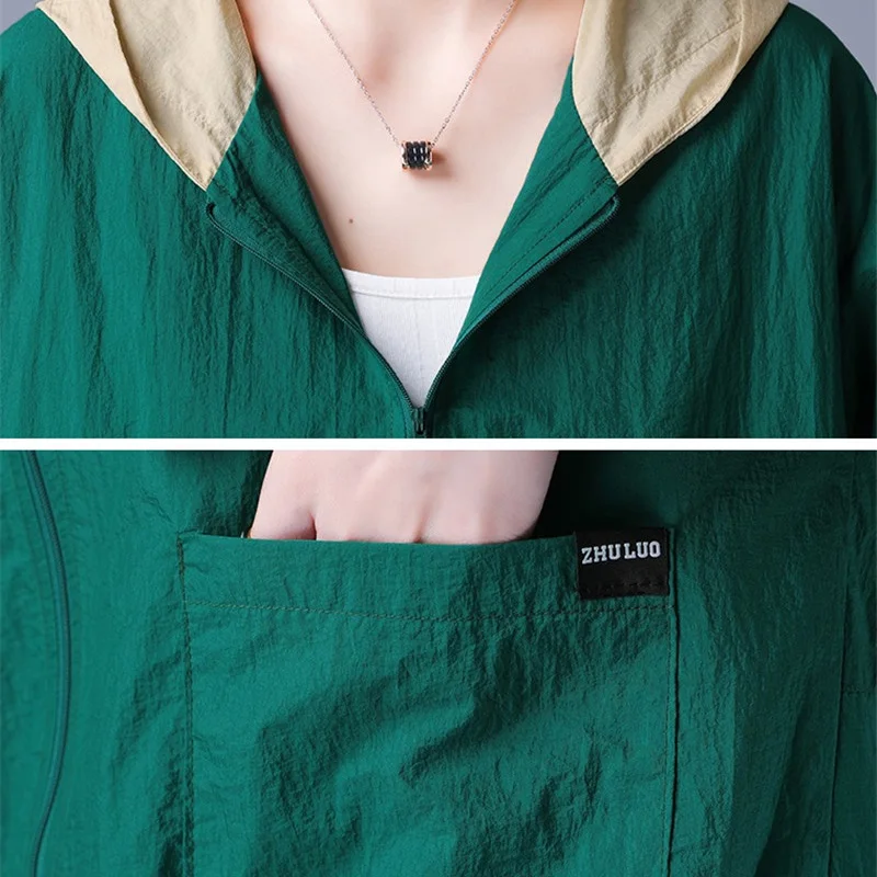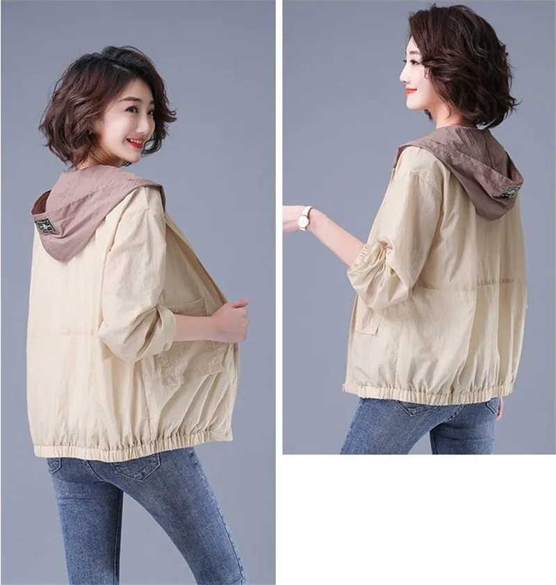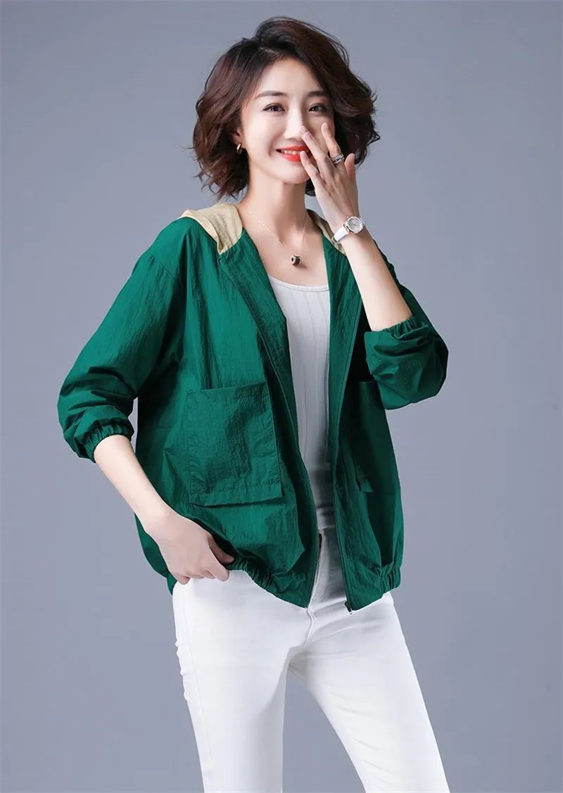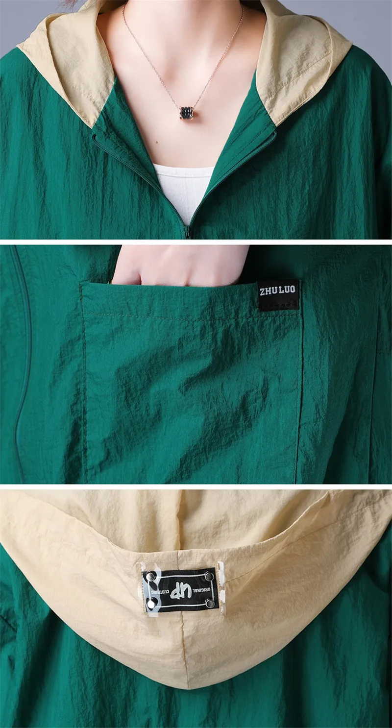 Куртка женская тонкая, ветровка с длинным рукавом, защита от солнца, с капюшоном, карманами, на молнии, 4XL, E7, лето 2020