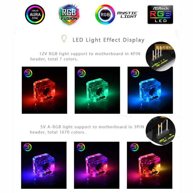 Bykski B-FMpa-V3-X,RGB Cuboid акриловый расходомер для воды, монито...