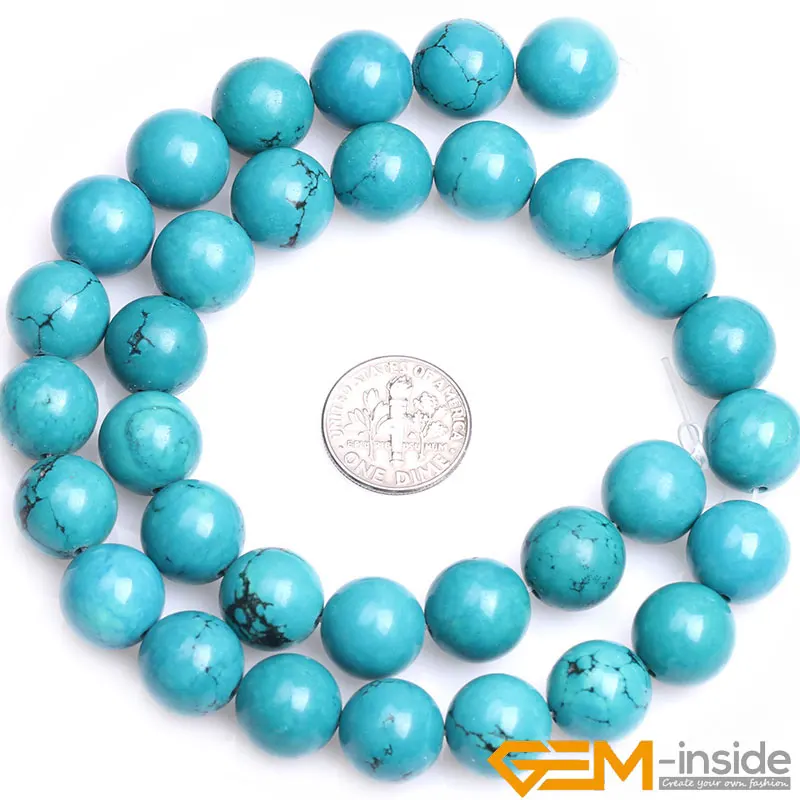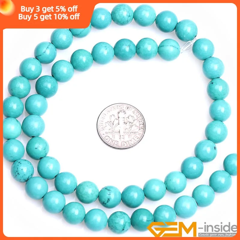 Голубой бирюзовый обработанные Круглые бусины для изготовления ювелирных изделий 15 дюймов рукоделие ювелирные бусины для женщин