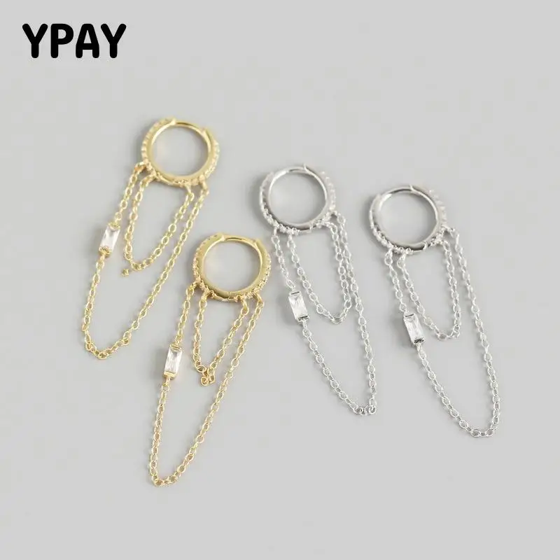 Женские серьги-кольца из серебра 100% пробы с квадратным цирконием