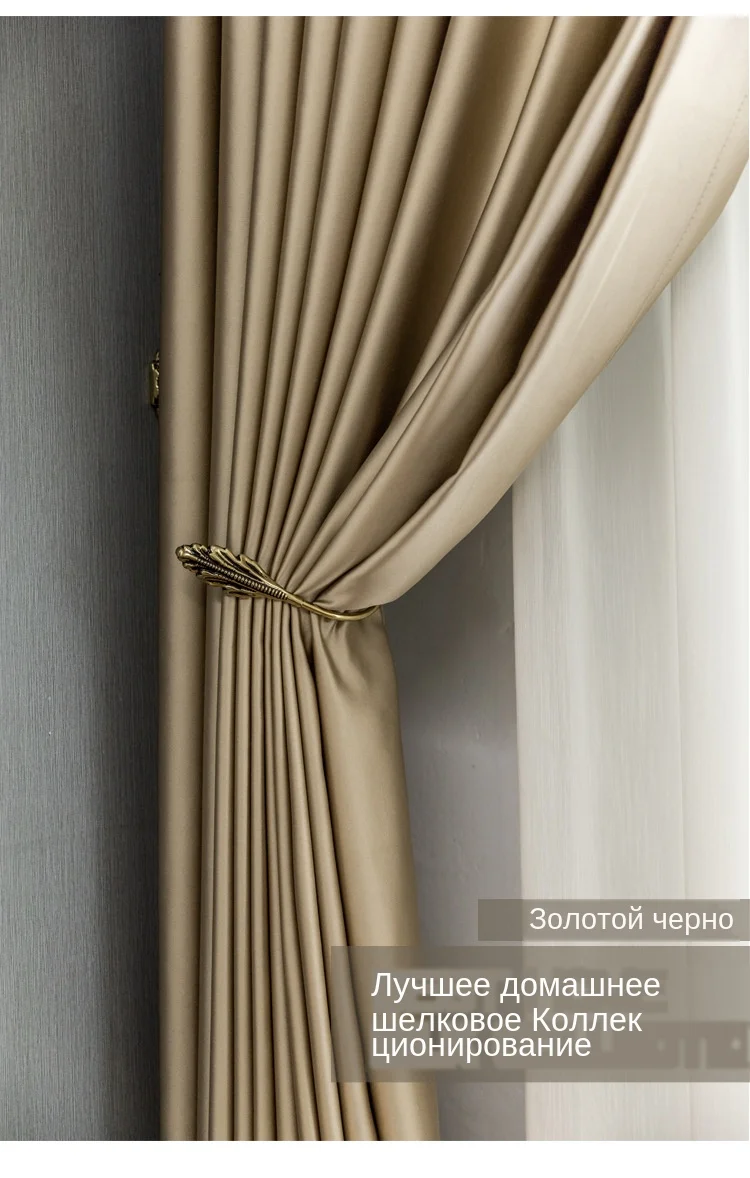Золотые шелковые затемняющие готовые шторы, теплоизоляционные шторы для гостиной, спальни, Роскошные плотные однотонные занавески для окон