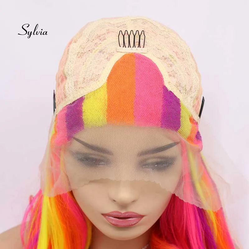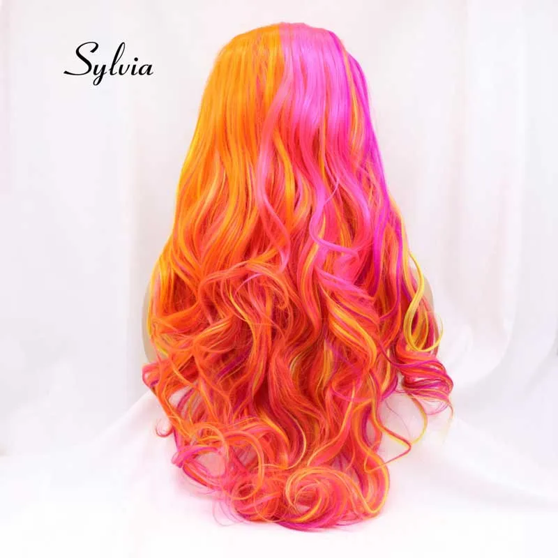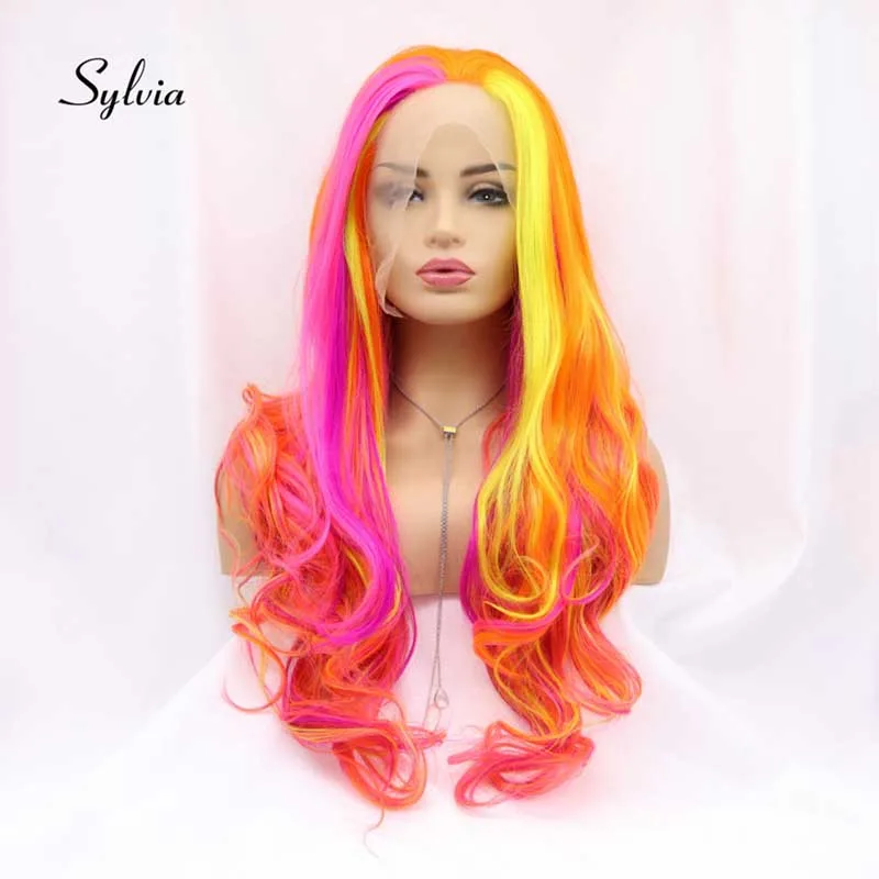 Парики для волос с радужной расцветкой, желтыекрасныефиолетовыеоранжевые, термостойкие