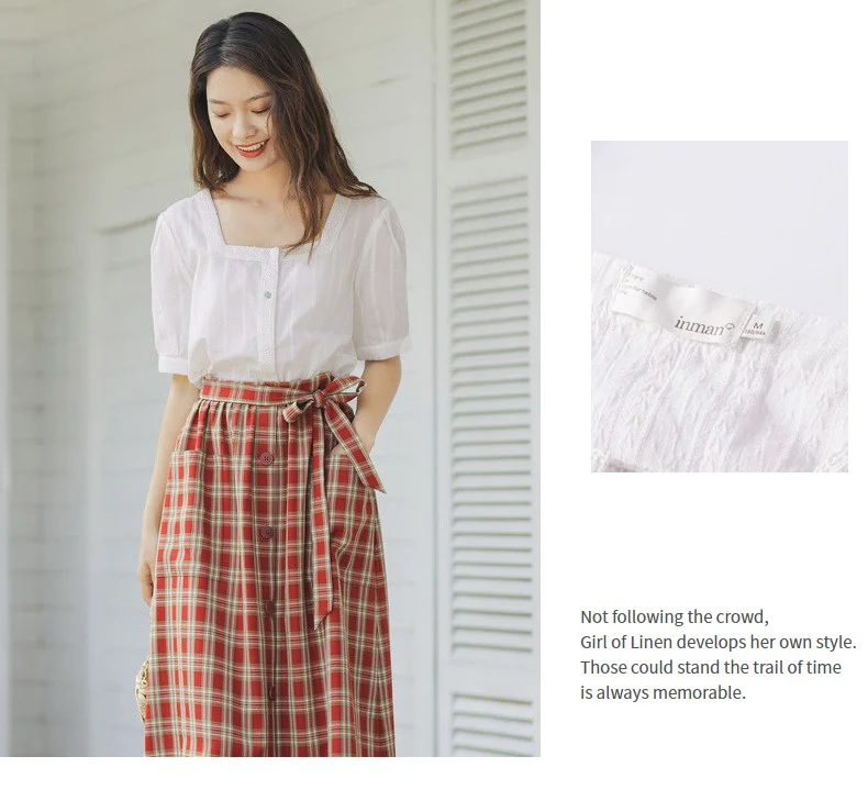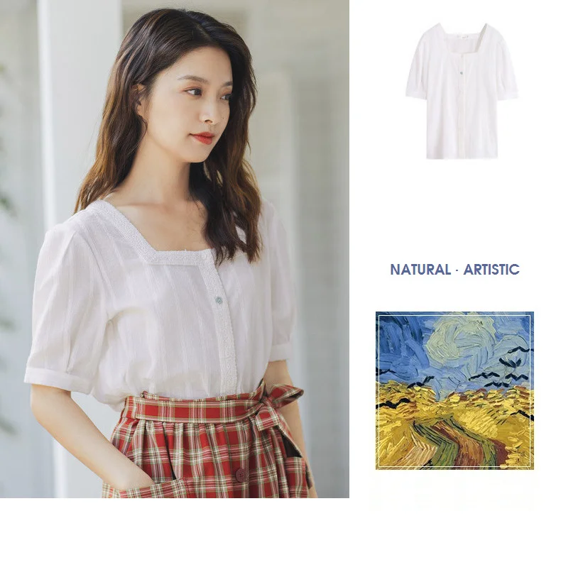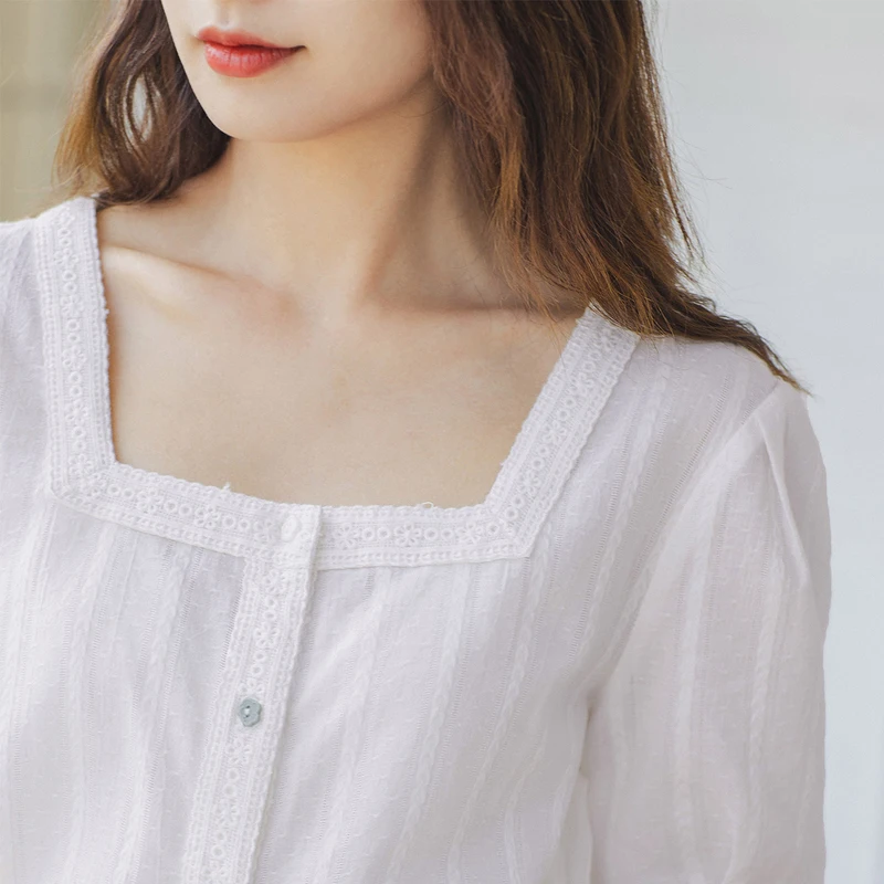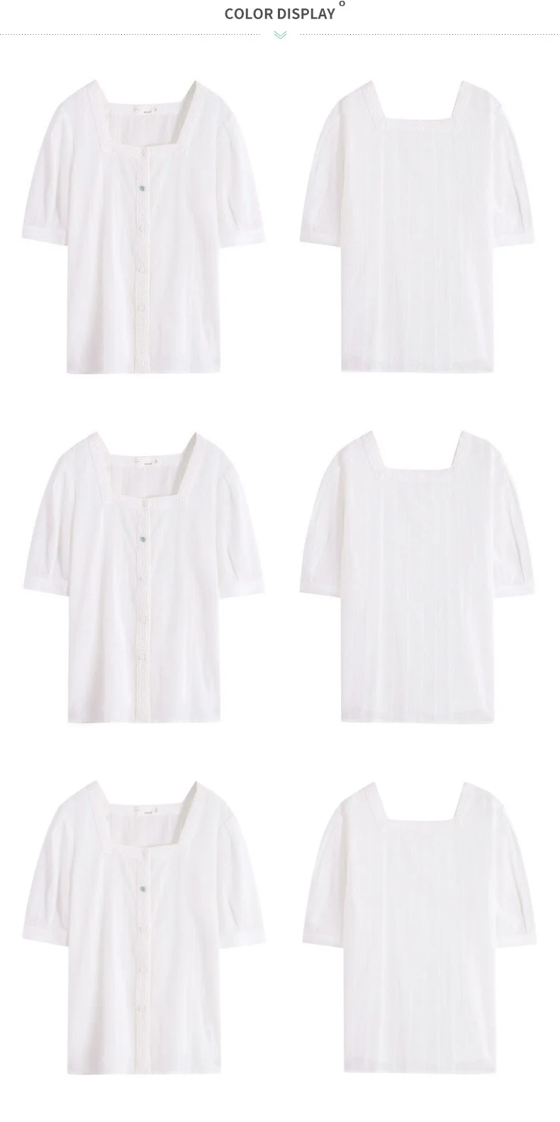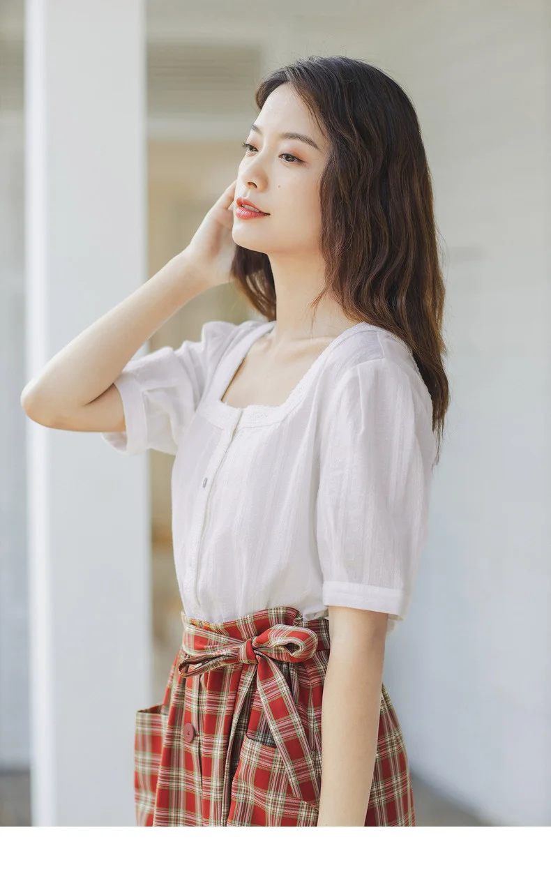 Блузка женская хлопковая в полоску, элегантная рубашка во французском стиле с квадратным воротником, с коротким рукавом и невидимыми цветами, белого цвета, на лето