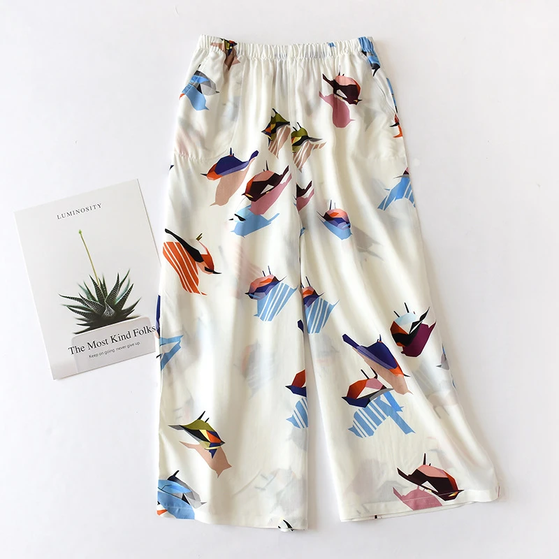 Женские свободные штаны для сна, летняя вискозная одежда для сна с ...