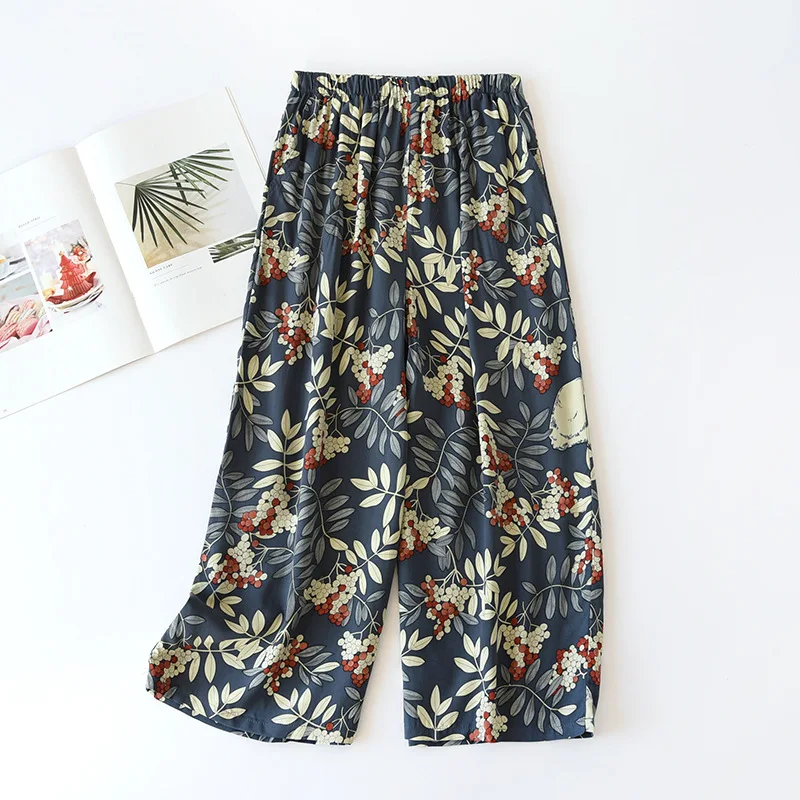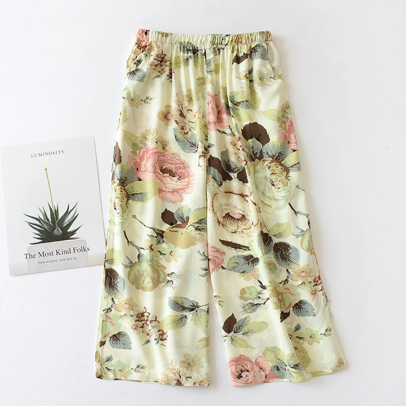Женские пижамные штаны JULY'S SONG, тонкие, эластичные, с цветочным принтом, длиной до икры, для дома, для сна, низ