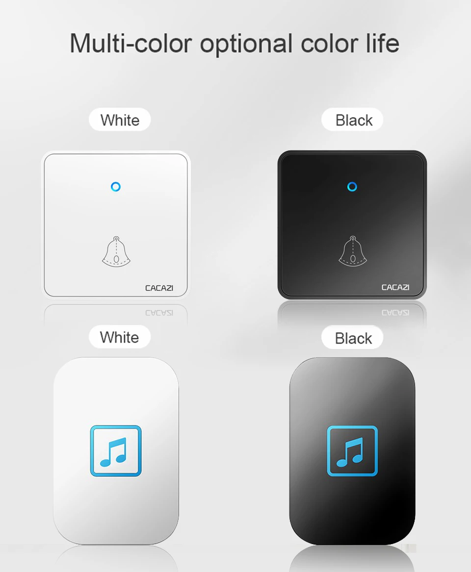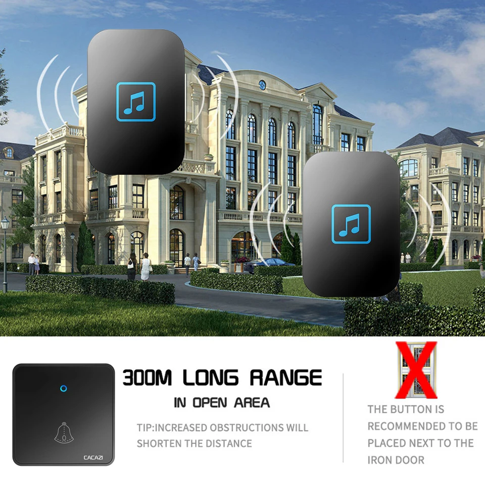 Беспроводной дверной звонок CACAZI, водонепроницаемый, 300 м, 60 колец, CR2032