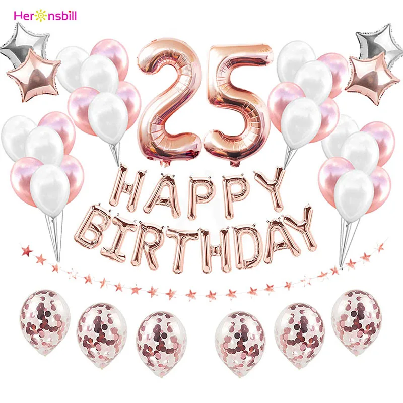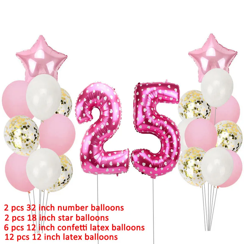 Воздушные шары с номером 25, украшение для дня рождения, 25 лет, ро...