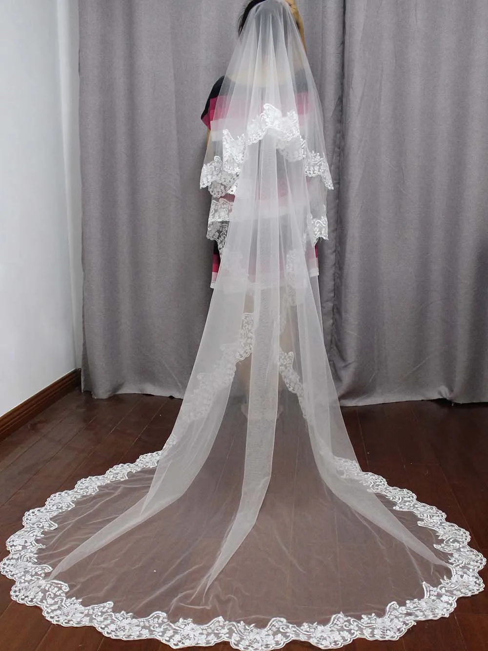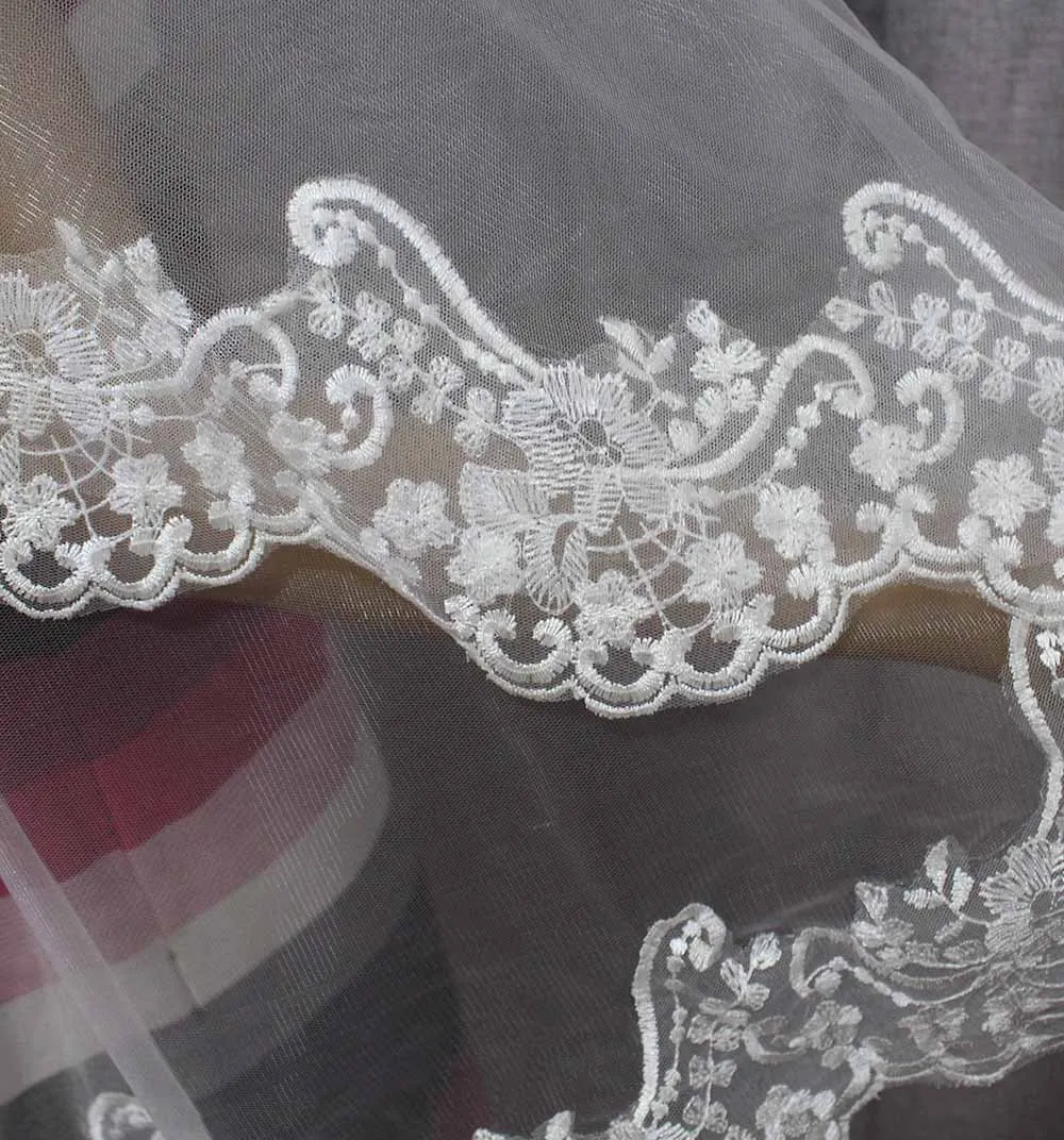 Фата свадебная с гребнем, элегантная Двухярусная, с румянами, мягкая Тюлевая, белая, цвета слоновой кости, свадебные аксессуары, 2,5 метра