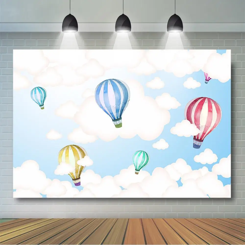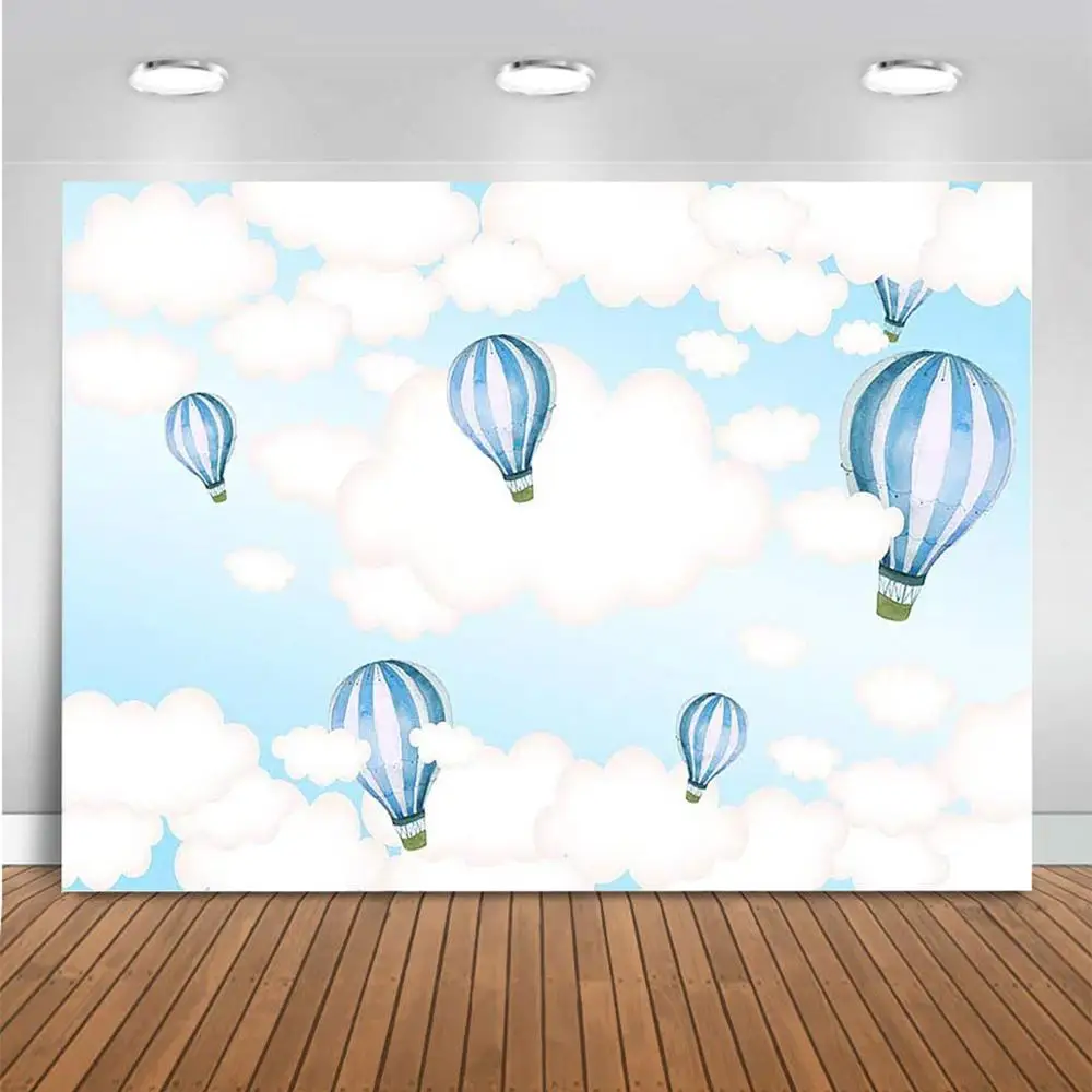 Фон для фотостудии с изображением горячего воздуха и голубого неба с белыми облаками