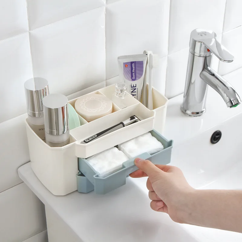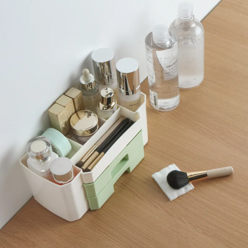 Пластиковый органайзер для макияжа, коробка для хранения кистей для макияжа с выдвижным ящиком, чехол для ватные тампоны палочки, розовый, синий, зеленый