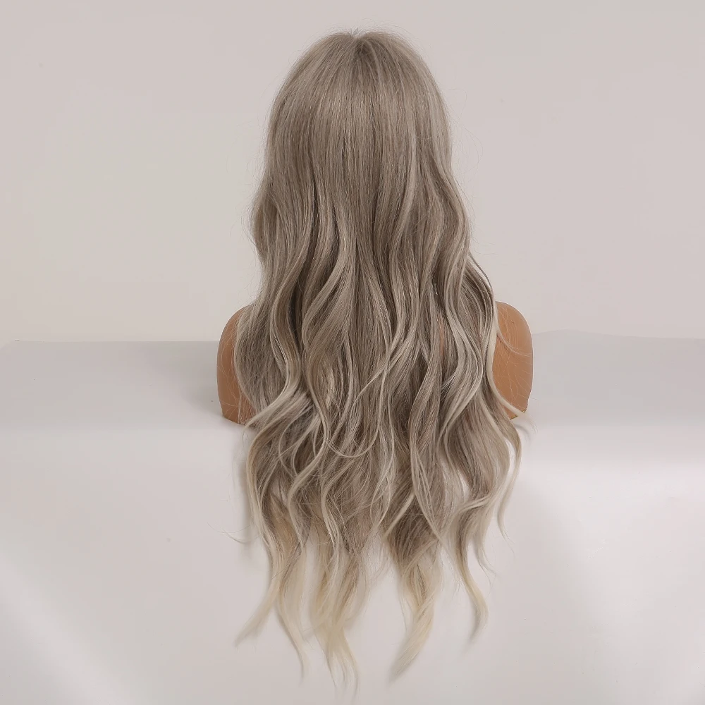 Луи Ферре Длинные Серые Омбре пепельно-белые синтетические парики с светлыми акцентами для женщин Косплей волнистый парик с челкой термостойкий
