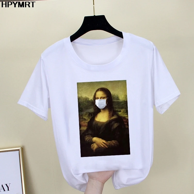 2020 новые летние футболки с принтом Моны Лизы, женские Забавные фу...