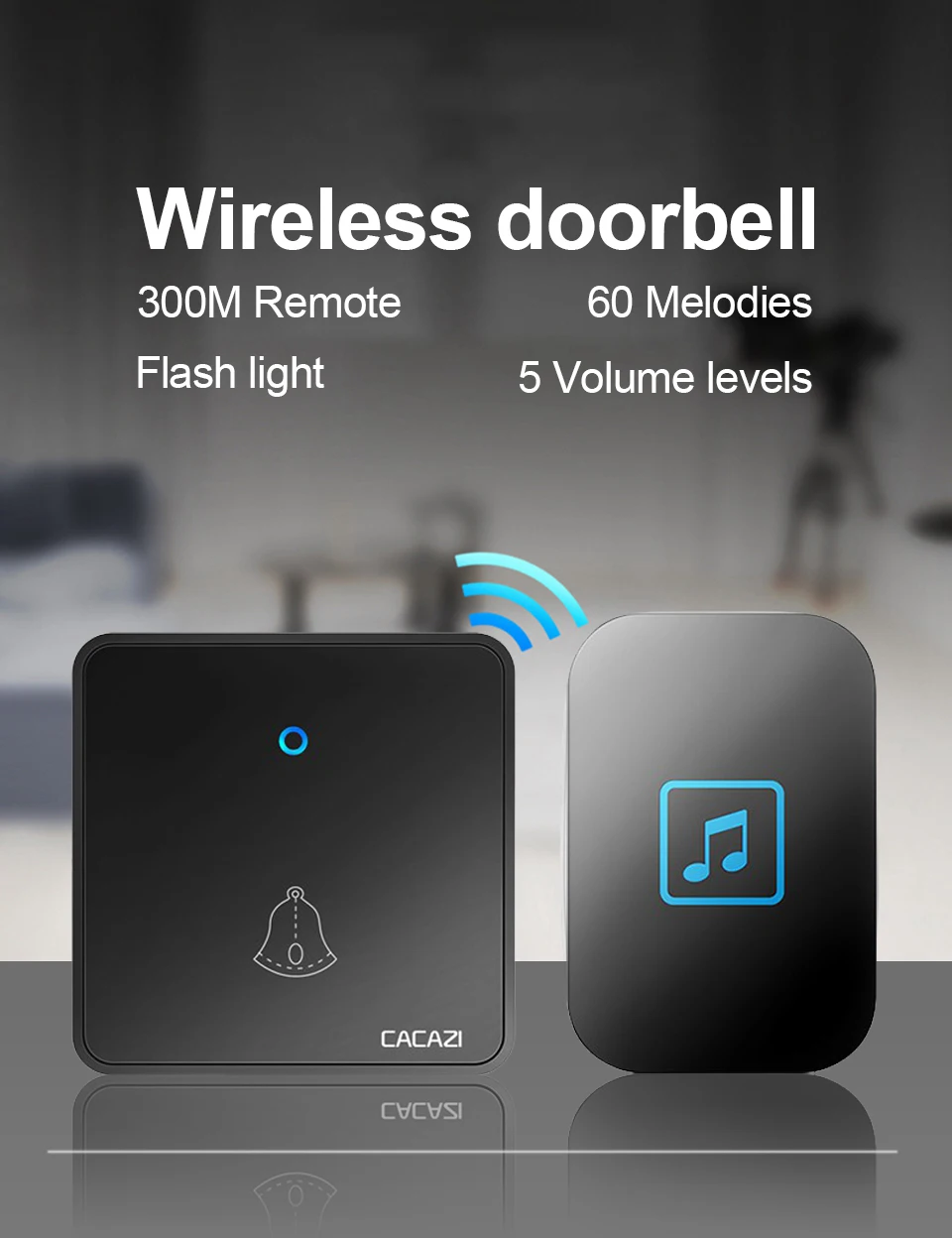 Беспроводной дверной звонок CACAZI, 300 м, с ДУ